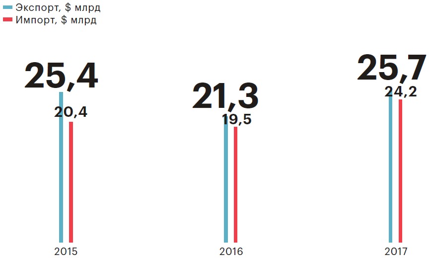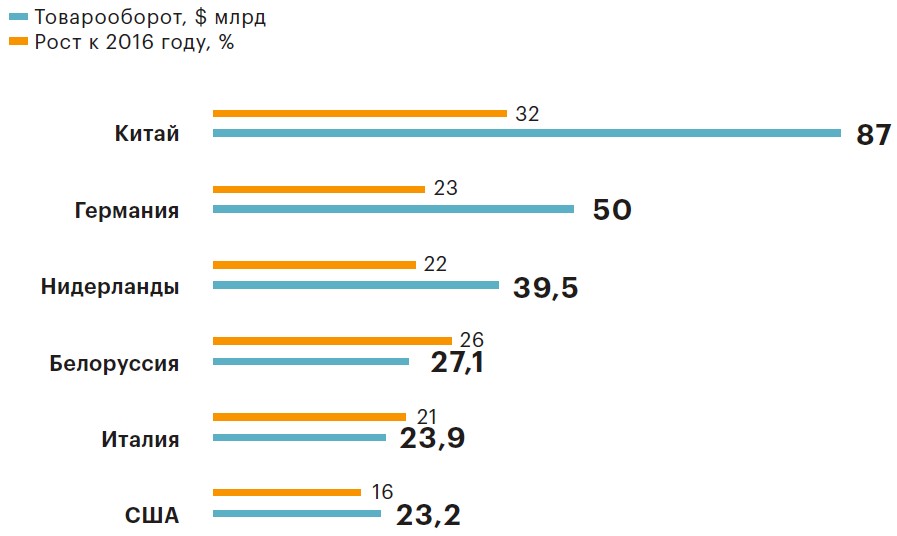 На фоне санкций торговый оборот между Россией и Германией вырос в прошлом году почти на четверть и составил, по данным российской Федеральной таможенной службы (ФТС), $50 млрд. Немецкие компании инвестировали в российскую экономику свыше €1,6 млрд, и предприниматели ожидают сохранения позитивной динамики в текущем году. По данным ФТС, в 2017 году Россия поставила в ФРГ продукции на $24,7 млрд, импортировала товаров на $24,3 млрд. Германия стала вторым по значимости торговым партнером после Китая, который наторговал с нашей страной на $87 млрд.