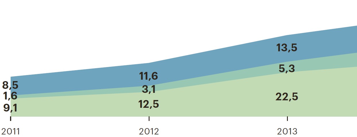 На российском игровом рынке самыми высокими всегда были доходы от продажи игр для персональных компьютеров (ПК), но в 2018 году рынок мобильных игр в России достигнет $635 млн, что почти равно доходам от игр для ПК, рассказала журналу РБК представитель исследовательской компании Newzoo Клео Сарделис. До 2021 года ежегодно выручка мобильных игр будет расти на 7,5%, что позволит этому сегменту стать самым крупным, отметила Сарделис.