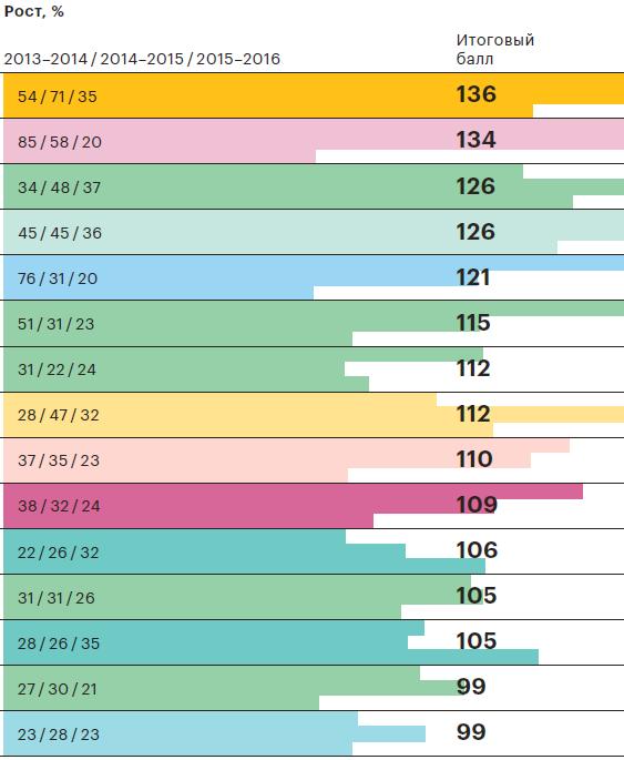 На финальном этапе компании лонг-листа ранжированы по коэффициенту роста, итоговый балл умножен на 10 для удобства представления.