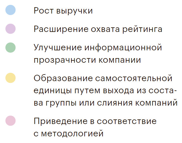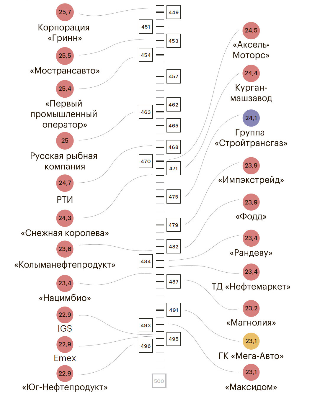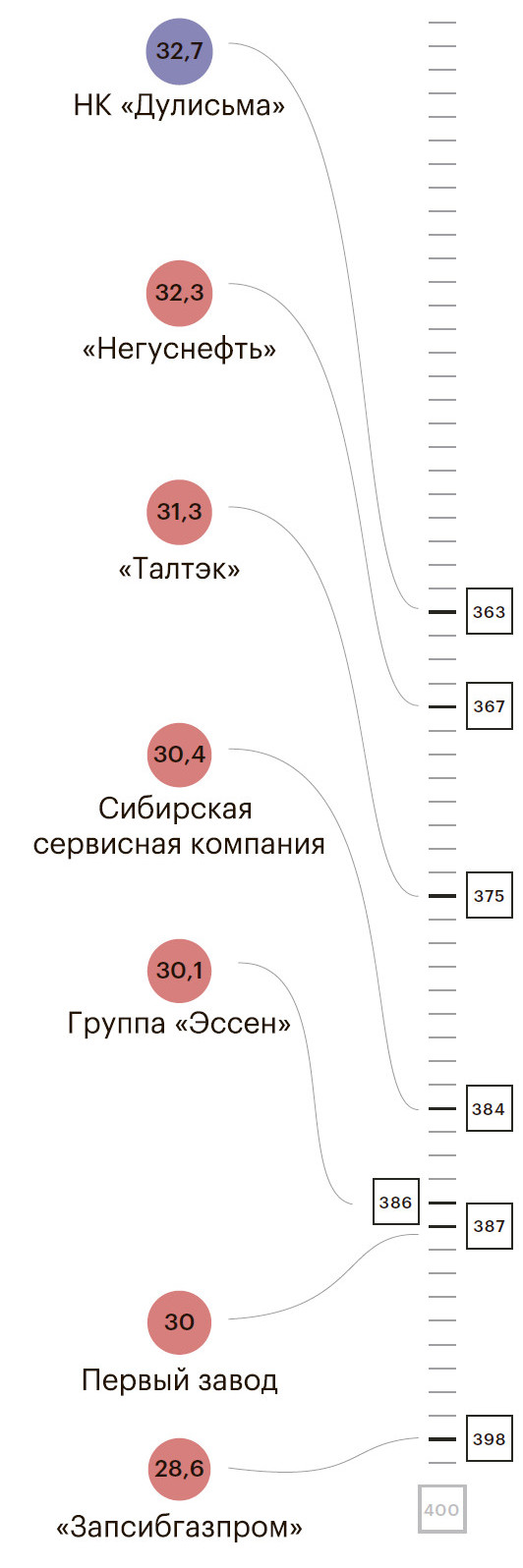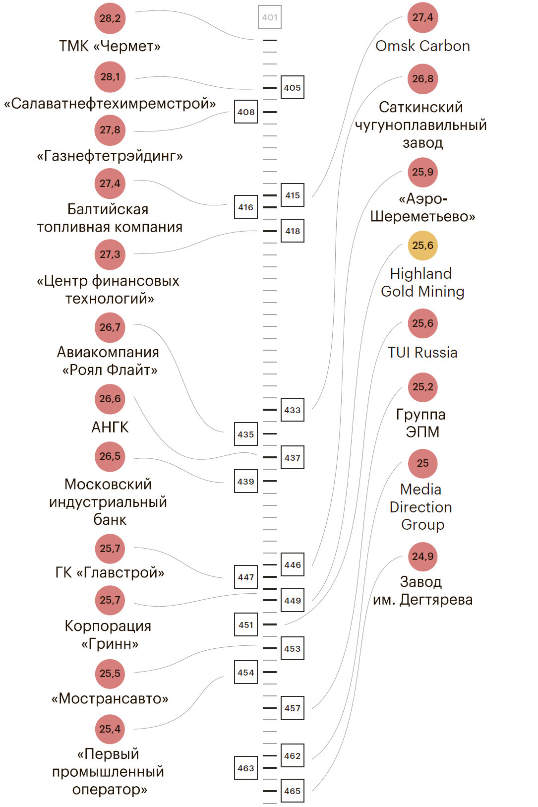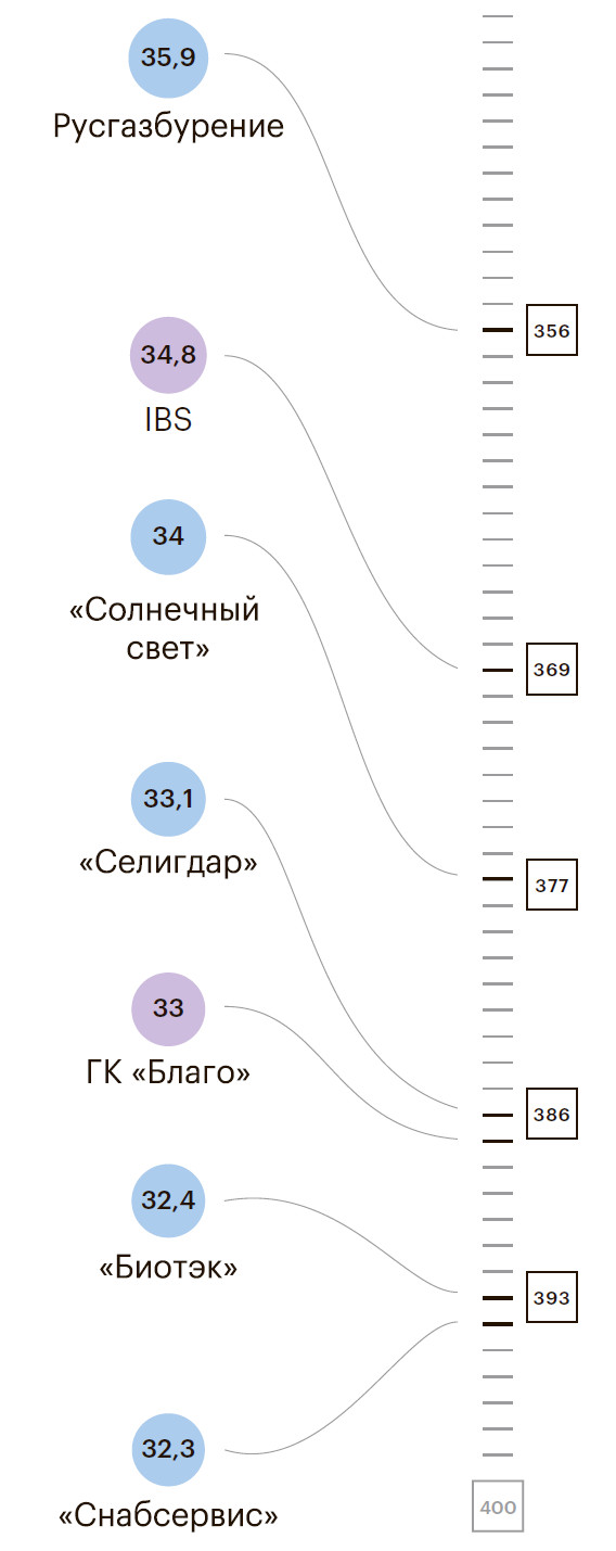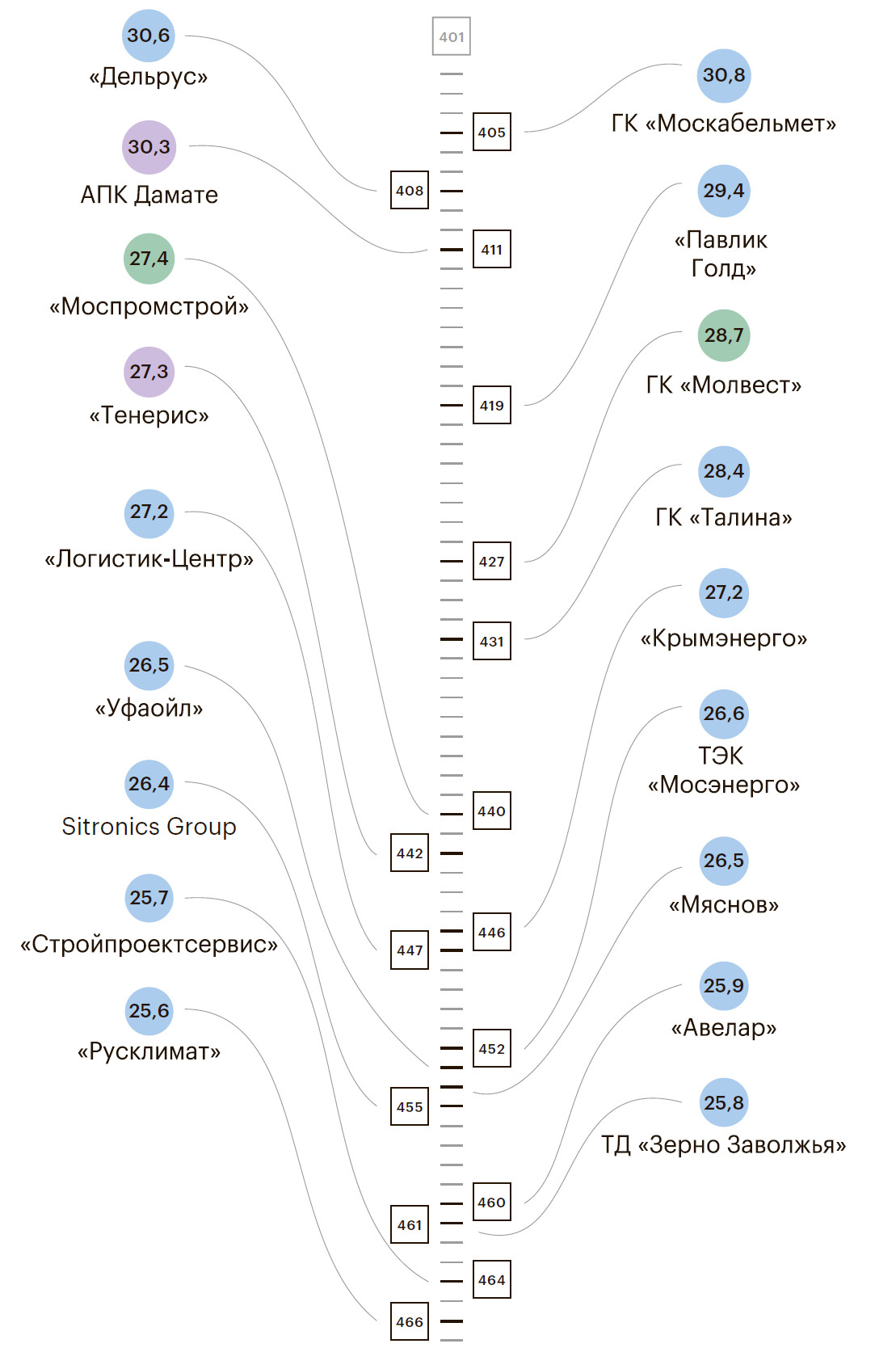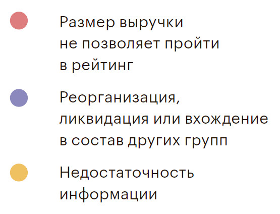 Как и в прошлом году, 12 компаний выбыли из рейтинга по причине реорганизации, ликвидации или вхождения в другую группу. Две компании выбыли из-за недостатка данных, необходимых для участия в рейтинге.