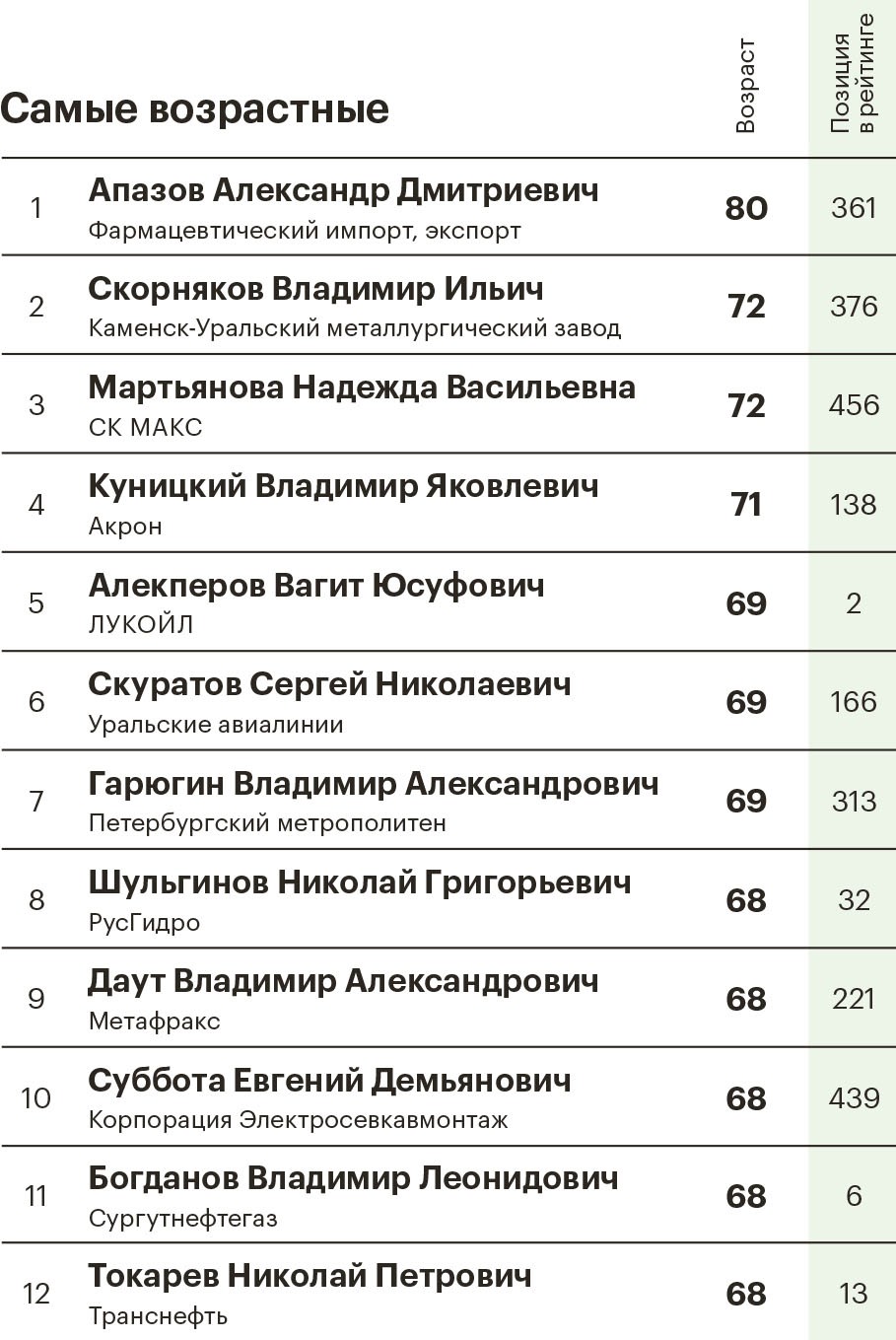 Каков возраст участников рейтинга