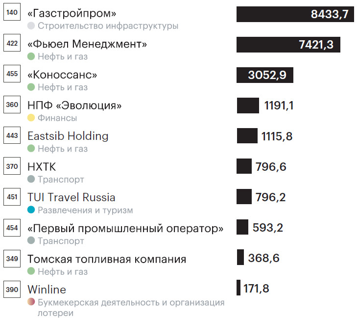 «В 2020 году, исходя из данных за первую половину года, я бы ожидал, что первая тройка отраслей по выручке в рейтинге (нефтегаз, финансы, горная добыча и металлы) не изменится, несмотря на объективно тяжелый год для нефтегазовой отрасли, — все-таки отрыв нефтегаза очень велик», — говорит Куликов. Для ретейла 2020 год также складывается непросто, но, судя по суммарным оборотам, его позиция в отраслевом рейтинге тоже должна сохраниться (торговля занимает четвертое место с долей 9,5%), добавляет эксперт.