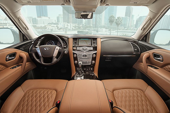 Один из самых больших автомобилей на российском рынке Infiniti QX80 пережил очередной, уже второй, рестайлинг и начиная с мая выходит на рынок в обновленном виде. Если мотор здесь остался тем же — это 5,6-литровый бензиновый агрегат мощностью 405 л.с., который разгоняет огромный внедорожник до 100 км/ч за 7,5 с и работает в паре с полноприводной трансмиссией, то среди комплектаций — две новые.
