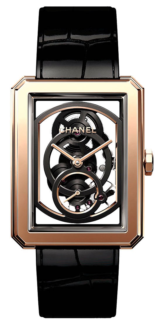 Часовое подразделение модного дома Chanel все увереннее чувствует себя на рынке производителей мануфактурных механизмов. Уже третий год подряд в Базеле компания представляет серьезные достижения в области часовой инженерии, которые не выглядят очередным дополнением к модному гардеробу. Первым стал мужской Caliber 1, разработанный для часов Monsieur de Chanel (2016). Важно было не просто предложить усложнения вроде прыгающего часа и ретроградной минуты, но сформулировать новую эстетику. Определяющей стала композиция механизма с мостами в форме шестеренок. Следующий Caliber 2 (2017 года) уже посвятили женщинам. Цветок камелии — первое, что бросается в глаза при взгляде на Camelia Skeleton, и только потом замечаешь, что в его лепестки вписаны рабочие части механизма. Третий калибр был создан для женских часов«с мужским характером» Boy.Friend. Платина и мосты скелетона формируют три окружности с черным ADSL-покрытием и фасками, отделанными фирменным золотом Beige, а вся конструкция вписана в восьмиугольник корпуса из бежевого золота. Каждый из триады калибров, созданных на мануфактуре G&F Chantelain, которая уже четверть века принадлежит Chanel, отмечен символом в виде львиной головы.
