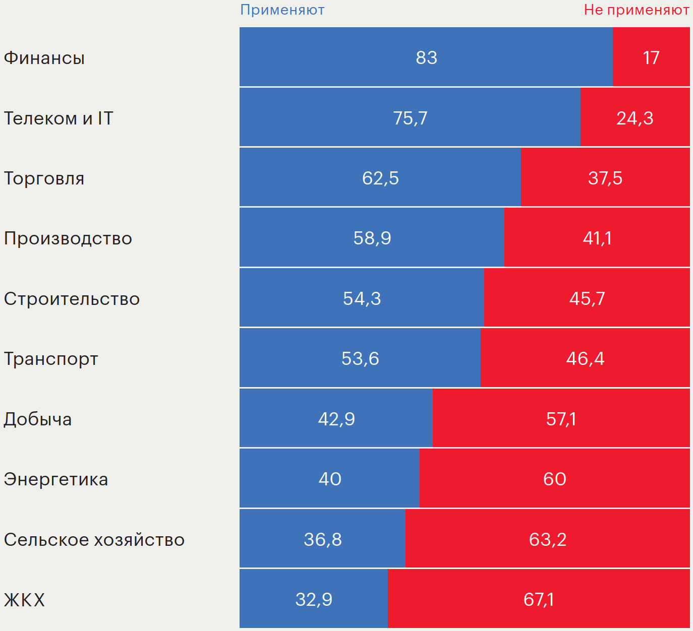 - Лидеры по применению больших данных — крупные сервисные компании телекома, IT и финансового сектора.
