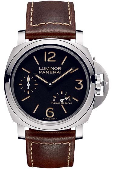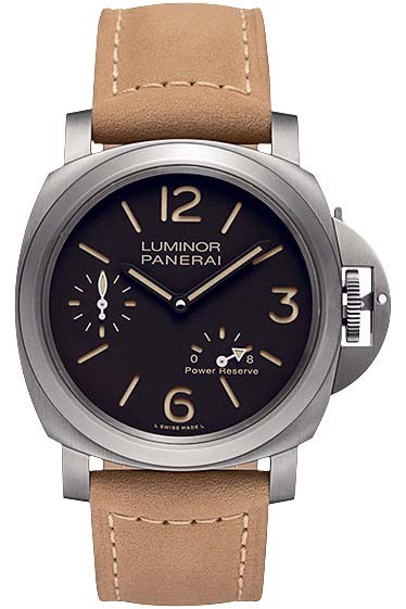 Мануфактура Officine Panerai представляет три новинки Luminor, которые характеризуются водонепроницаемым до глубины 300 м корпусом размера 44 мм и недельным запасом хода. Близки по дизайну и по функционалу стальная модель Luminor 8 Days Power Reserve Acciaio и титановая Luminor 8 Days Power Reserve Titanio. Циферблаты, ремешки из натуральной кожи, прострочка, люминесцентное покрытие передают оттенки коричневого спектра. Калибр P.5002 с ручным заводом и одним заводным барабаном обеспечивает восьмидневный запас хода у обеих моделей. Информация об оставшемся времени хода читается на сэндвичевом циферблате между четырьмя и пятью часами, а стрелочный указатель напоминает индикацию в моделях Panerai конца 1990-х.