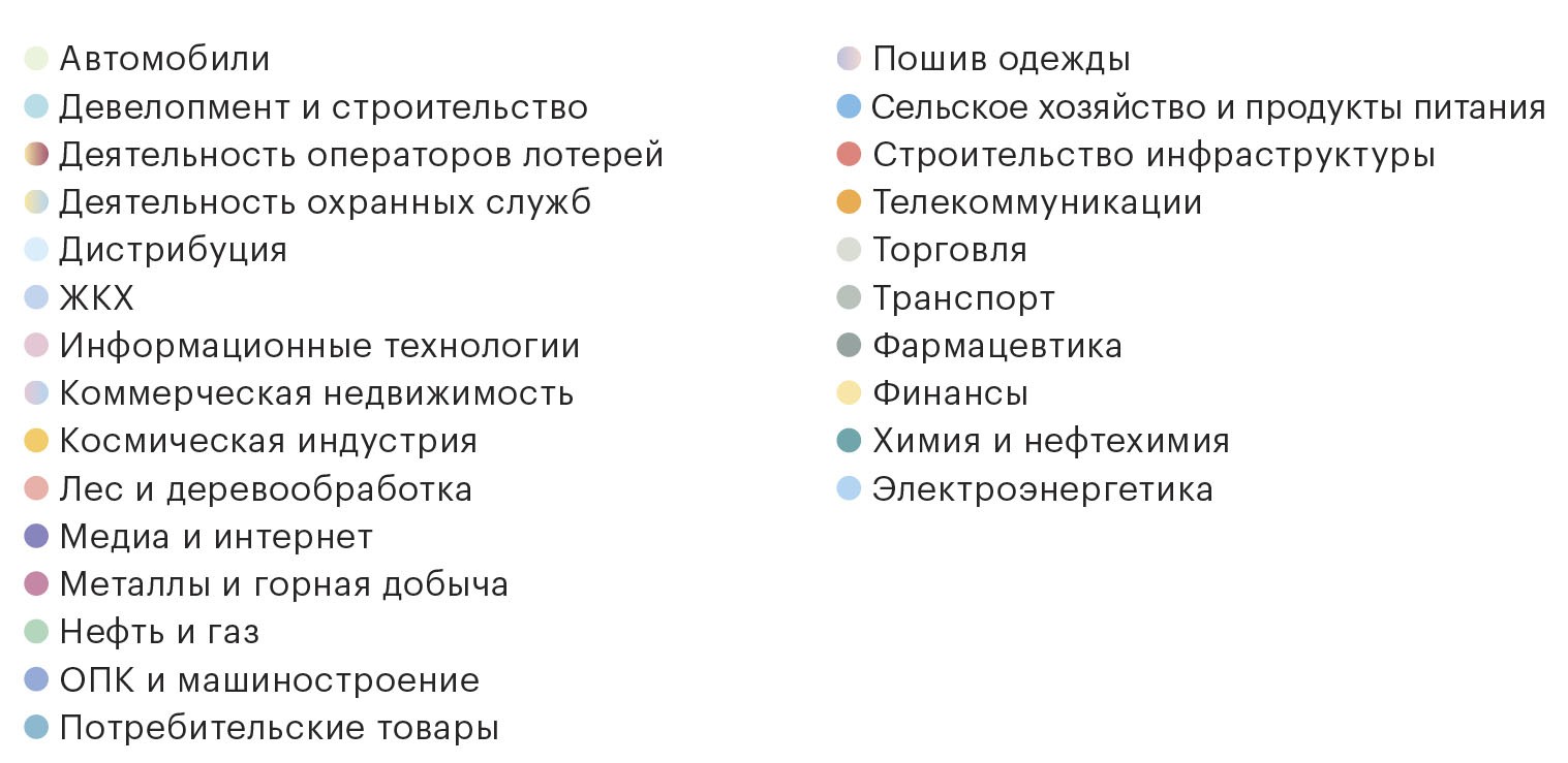 По пять новичков дали отрасли «Нефть и газ», «Строительство инфраструктуры», «Торговля» и «Дистрибуция» — все они традиционно дают много новых имен в рейтинг РБК 500. Отрасль «Финансы», которая раньше тоже поставляла много новичков, в этом году представлена лишь одной компанией, да и то переживающей сложные времена, — НПФ «Сафмар» семьи Гуцериевых.