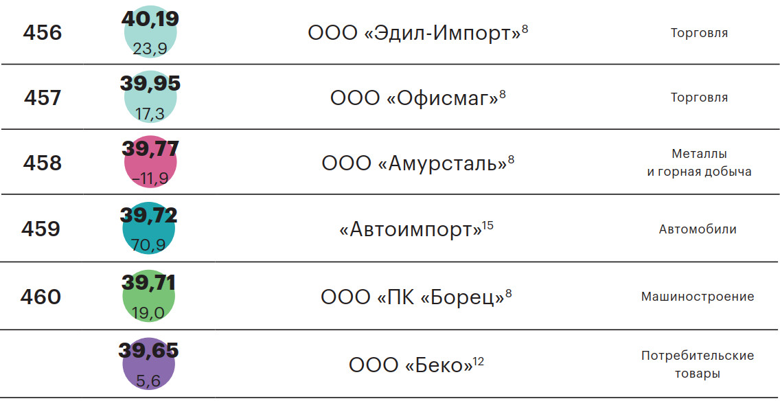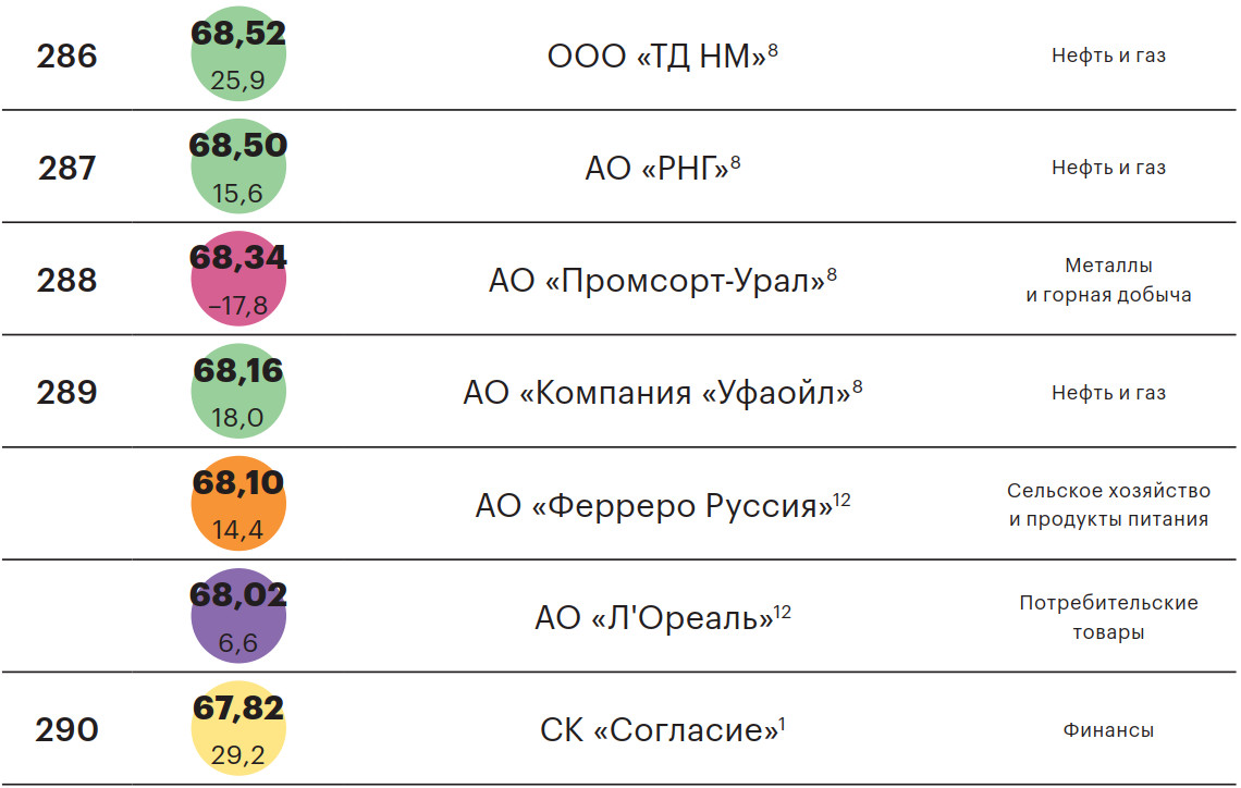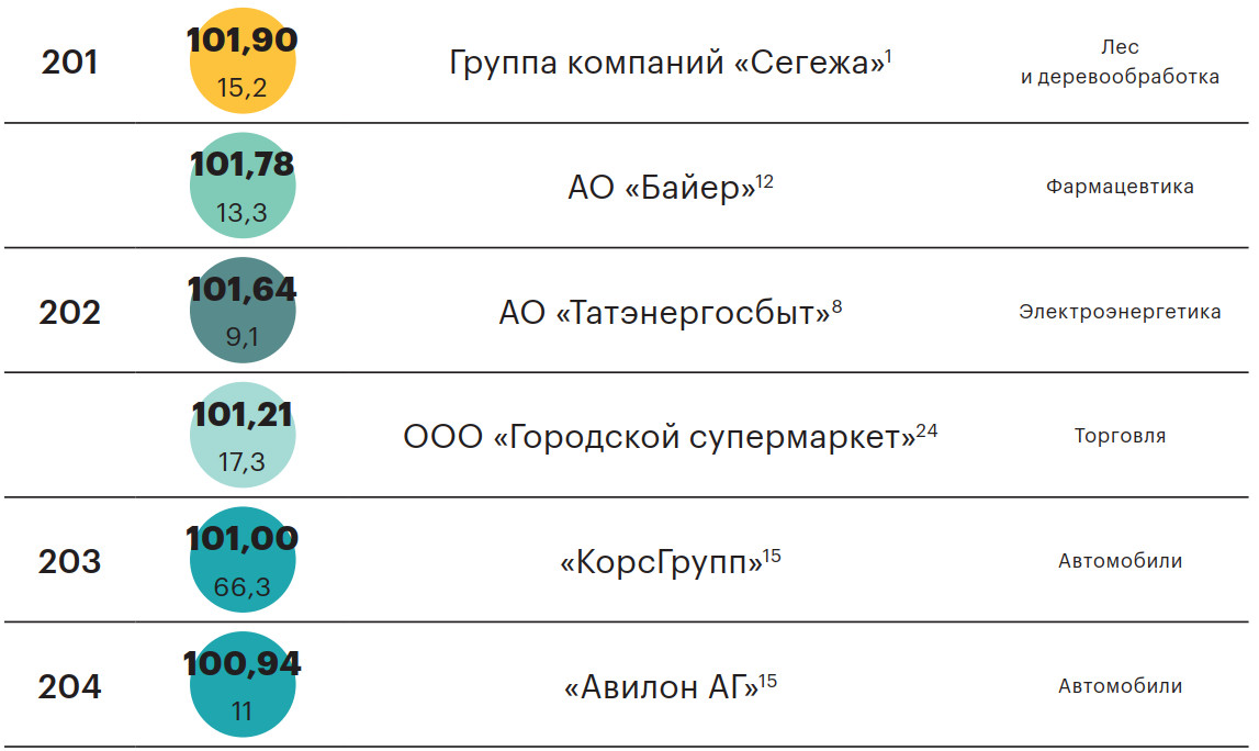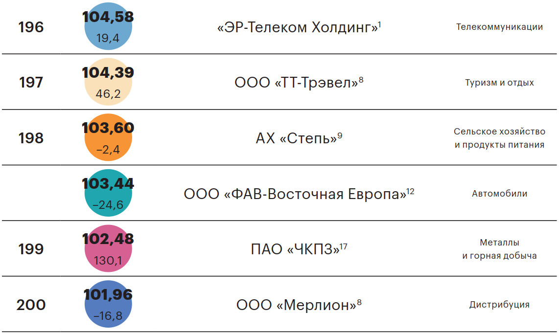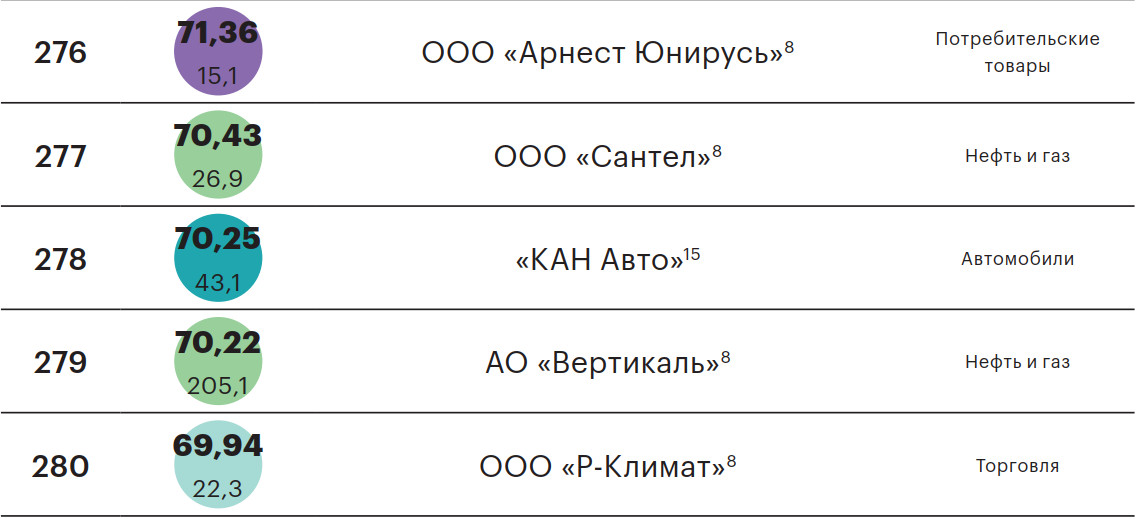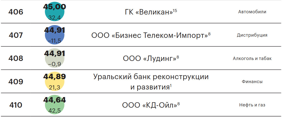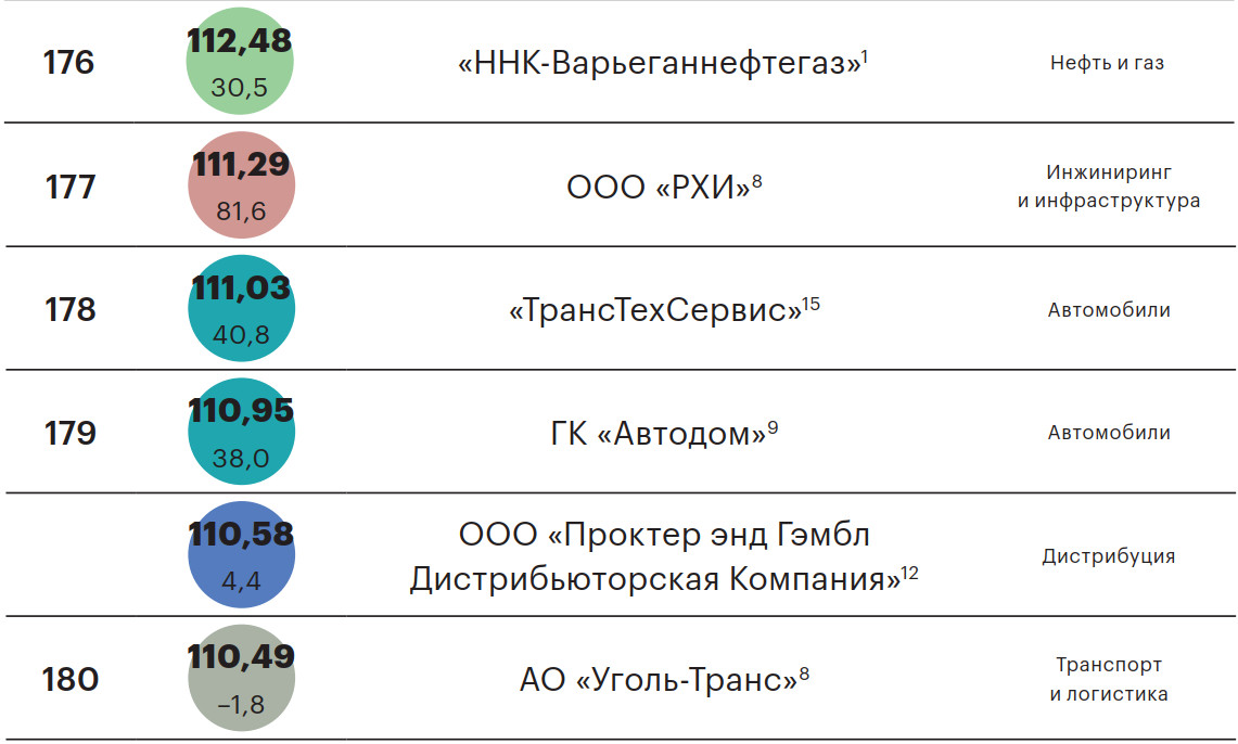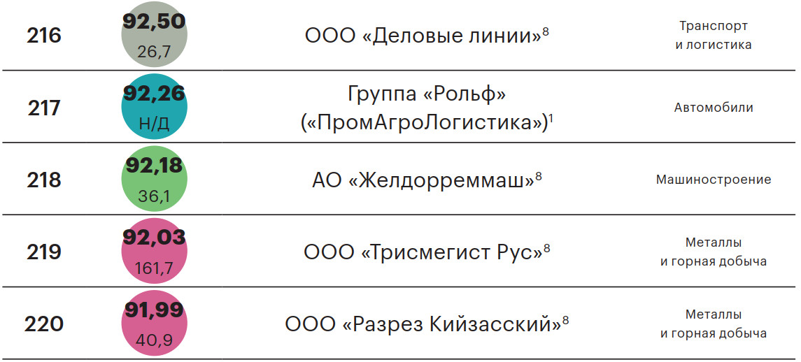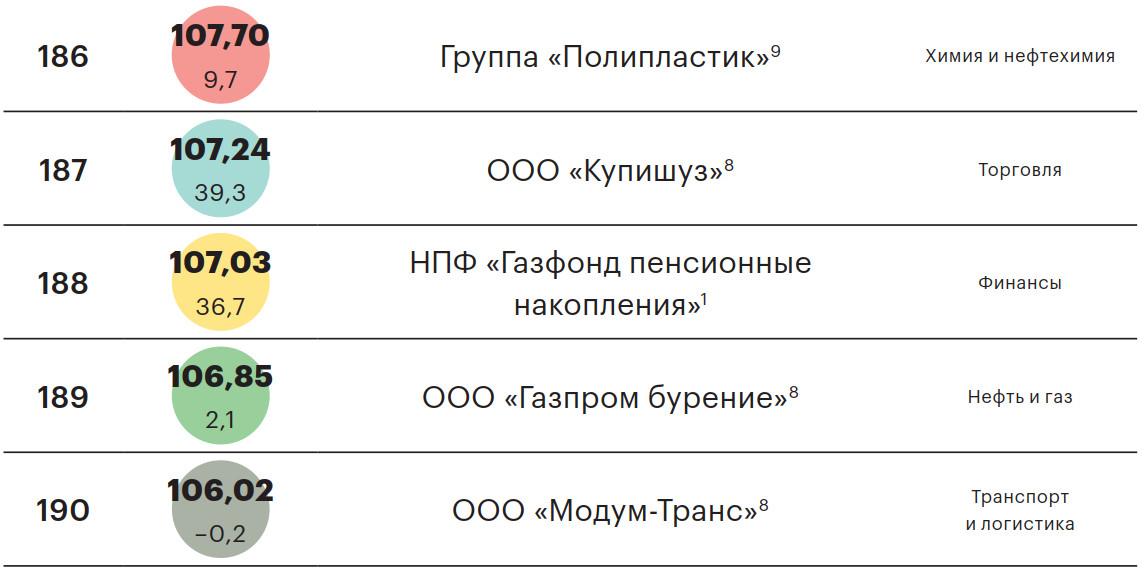Также в рейтинге без присвоения номера в качестве примера и справочной информации представлены российские многопрофильные холдинги и российские компании с иностранным контролем. Если действующая в России группа компаний с иностранной собственностью публикует или предоставляет РБК консолидированную отчетность по международным стандартам финансовой отчетности (МСФО), то в рейтинге используются показатели такой отчетности. При отсутствии данных консолидированной отчетности, в случае если в России присутствуют несколько компаний, принадлежащих одной иностранной корпорации, в рейтинг включается компания с наибольшей выручкой.
