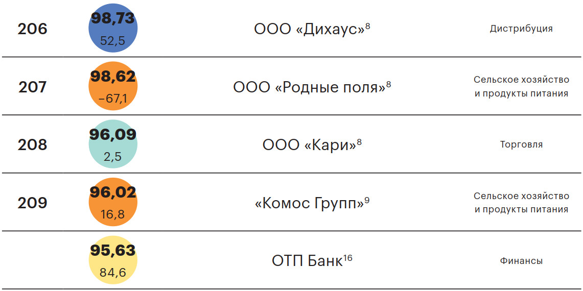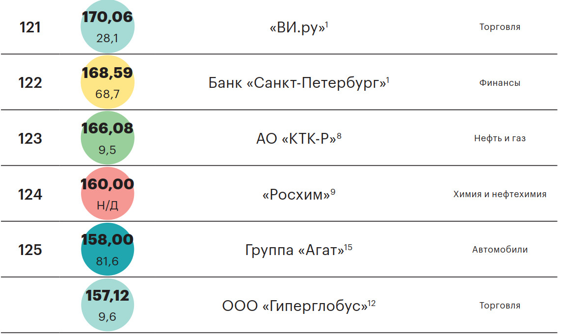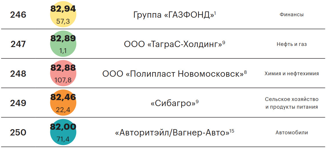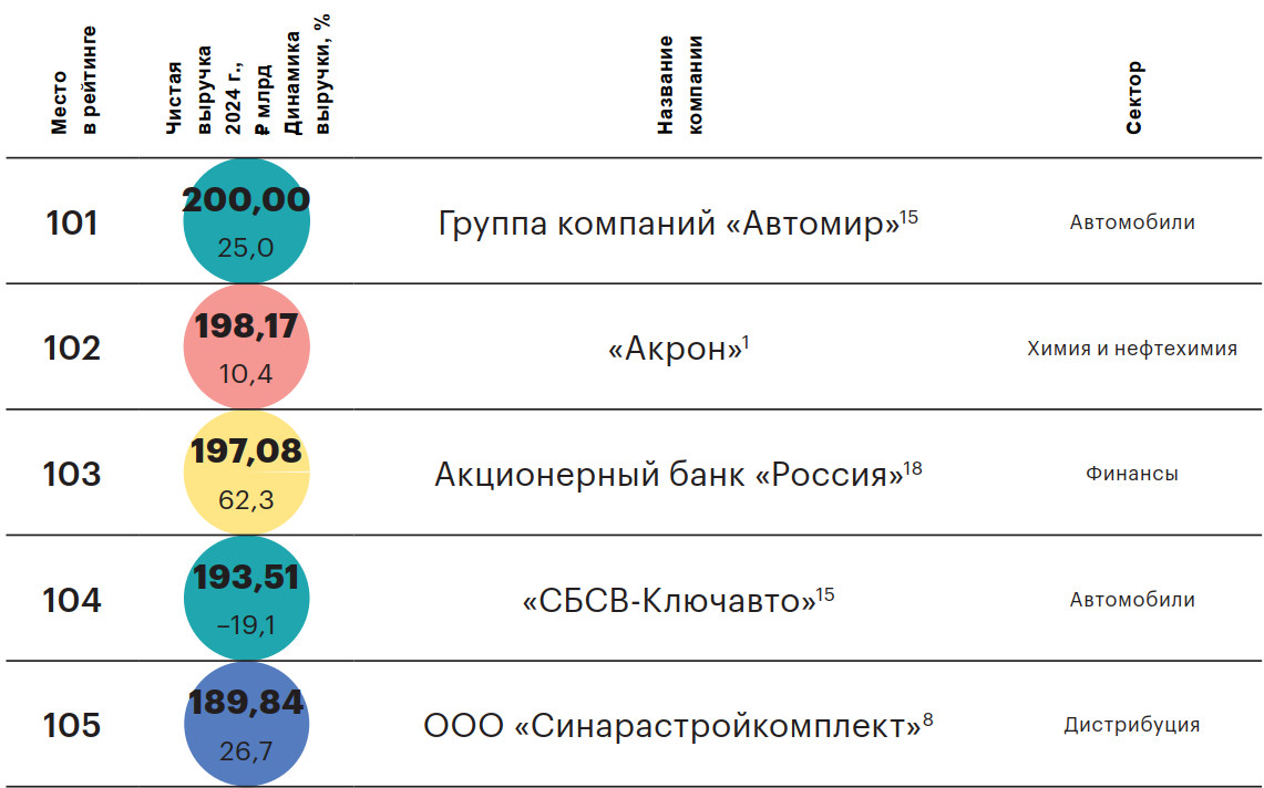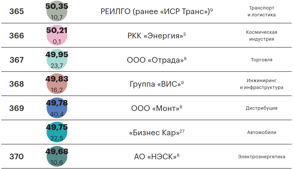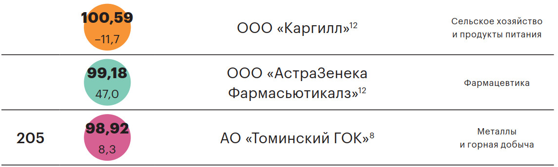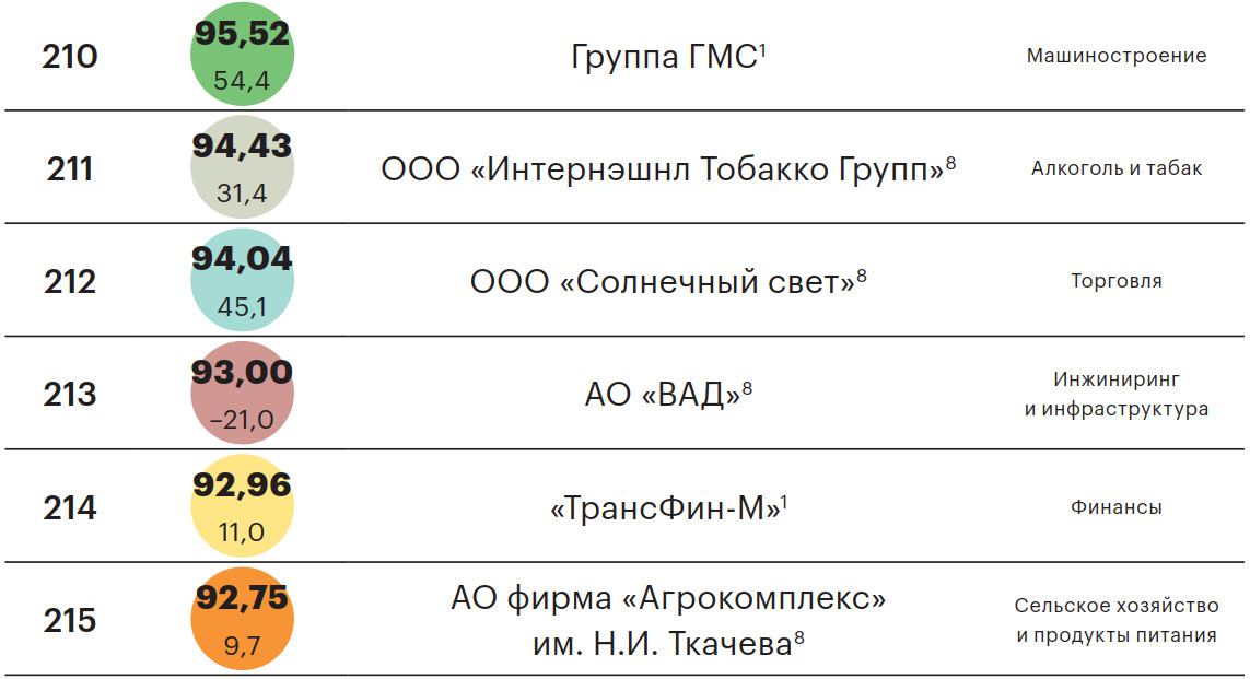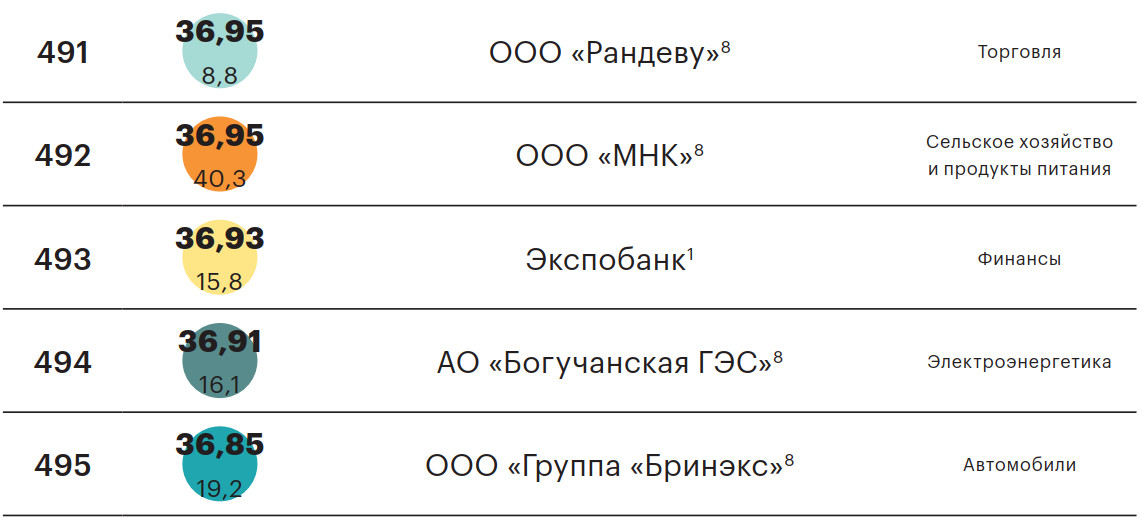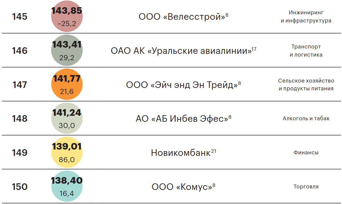 Также в рейтинге без присвоения номера в качестве примера и справочной информации представлены российские многопрофильные холдинги и российские компании с иностранным контролем. Если действующая в России группа компаний с иностранной собственностью публикует или предоставляет РБК консолидированную отчетность по международным стандартам финансовой отчетности (МСФО), то в рейтинге используются показатели такой отчетности. При отсутствии данных консолидированной отчетности, в случае если в России присутствуют несколько компаний, принадлежащих одной иностранной корпорации, в рейтинг включается компания с наибольшей выручкой.