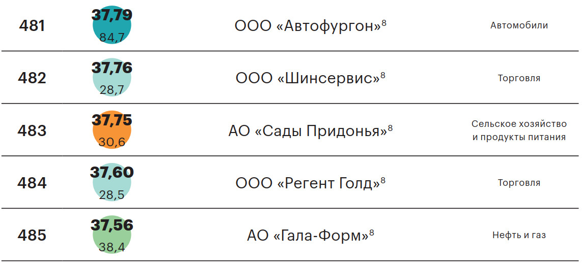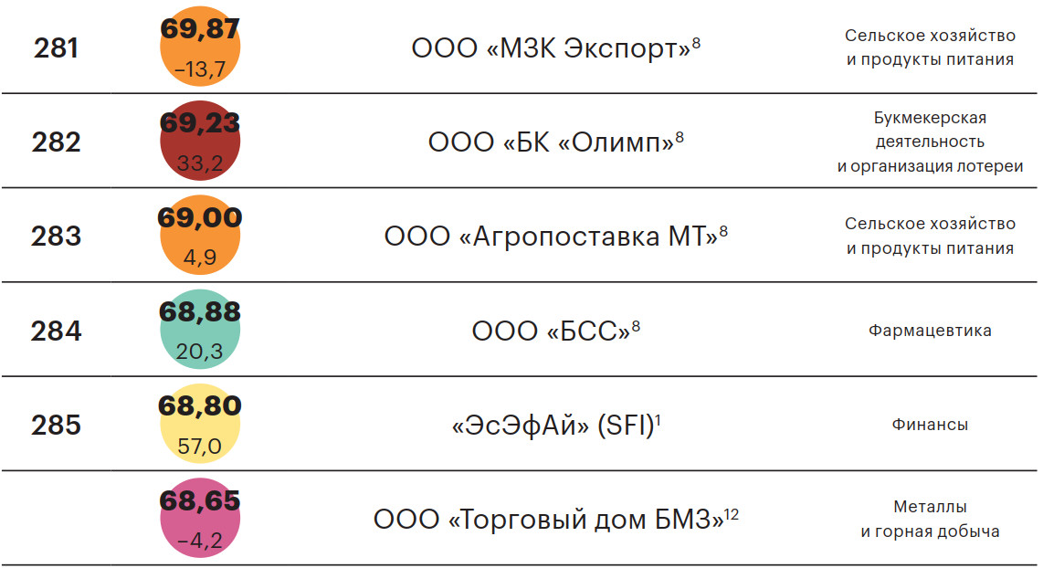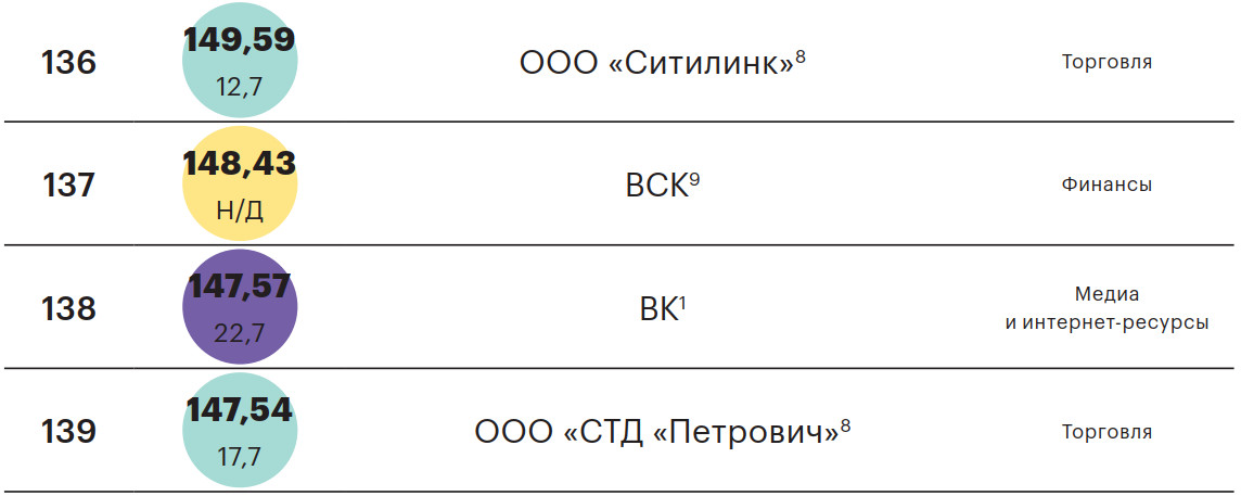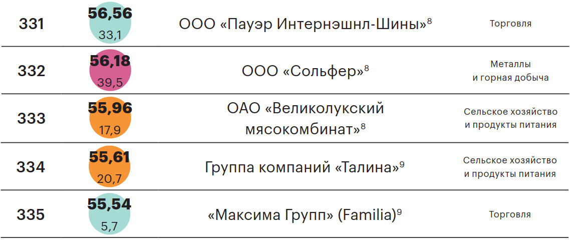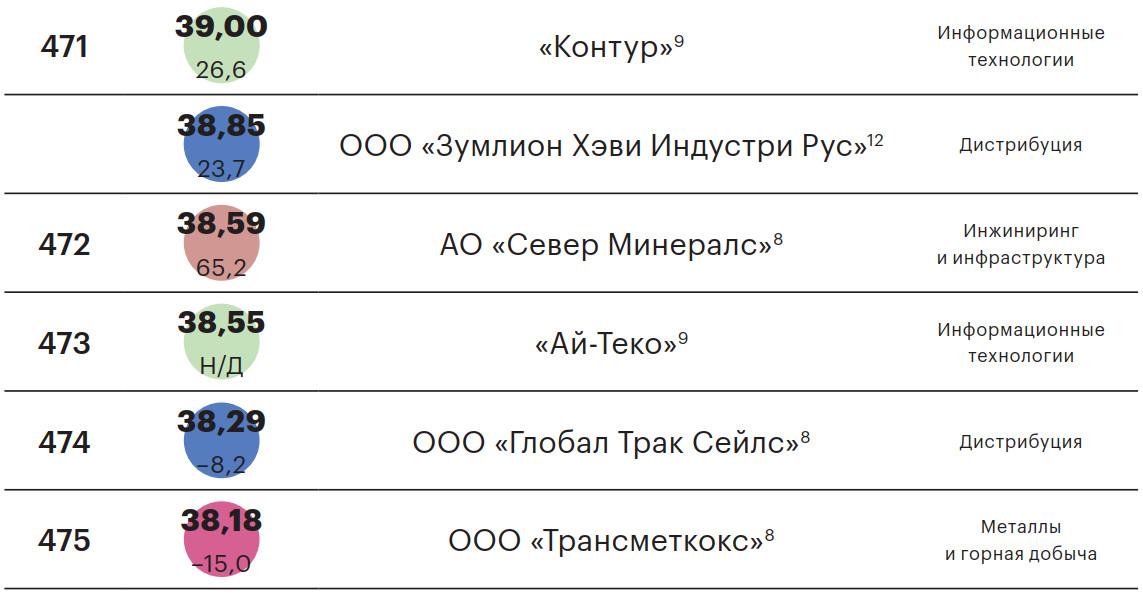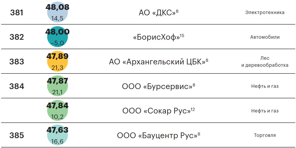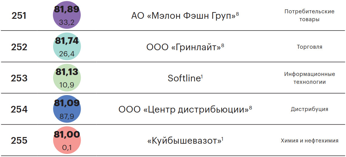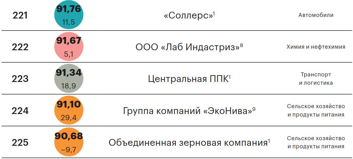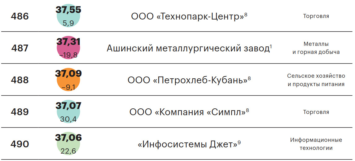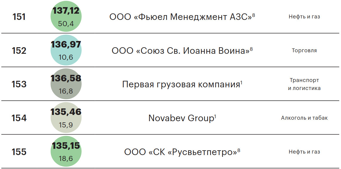 Также в рейтинге без присвоения номера в качестве примера и справочной информации представлены российские многопрофильные холдинги и российские компании с иностранным контролем. Если действующая в России группа компаний с иностранной собственностью публикует или предоставляет РБК консолидированную отчетность по международным стандартам финансовой отчетности (МСФО), то в рейтинге используются показатели такой отчетности. При отсутствии данных консолидированной отчетности, в случае если в России присутствуют несколько компаний, принадлежащих одной иностранной корпорации, в рейтинг включается компания с наибольшей выручкой.