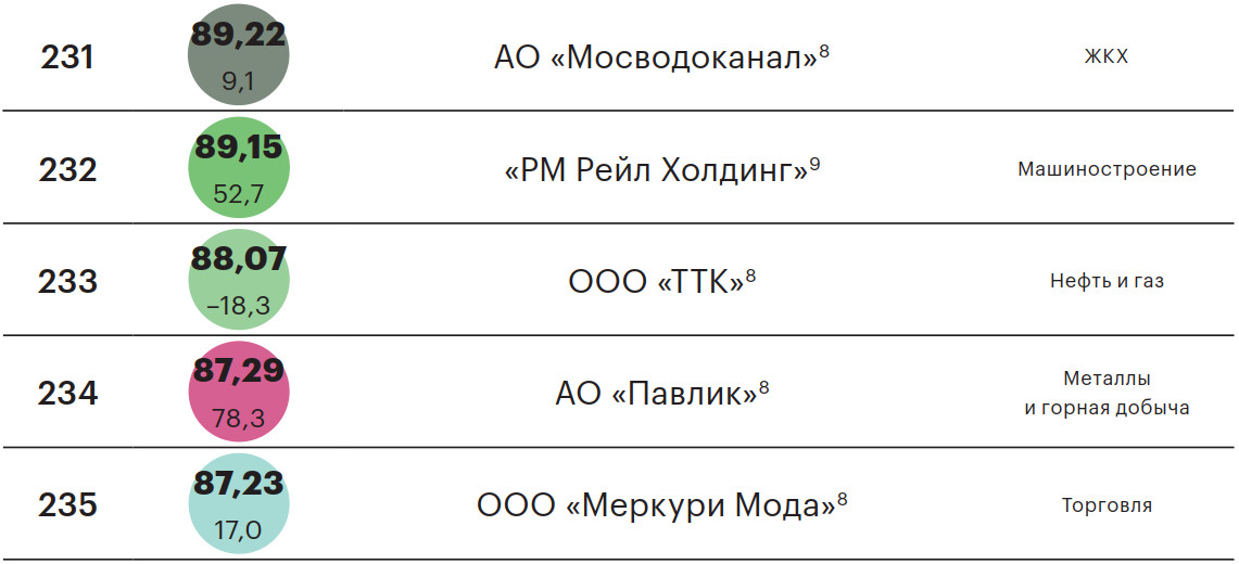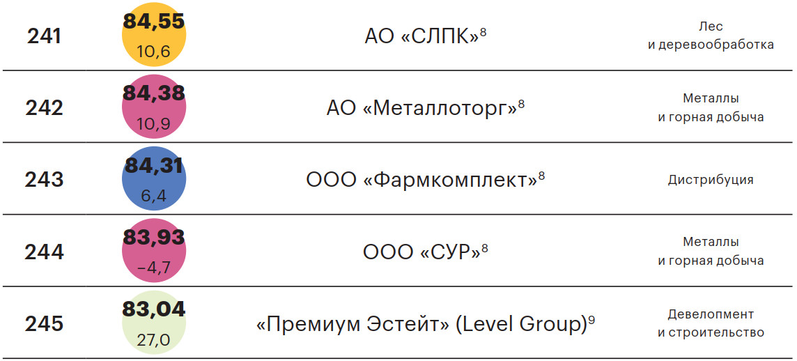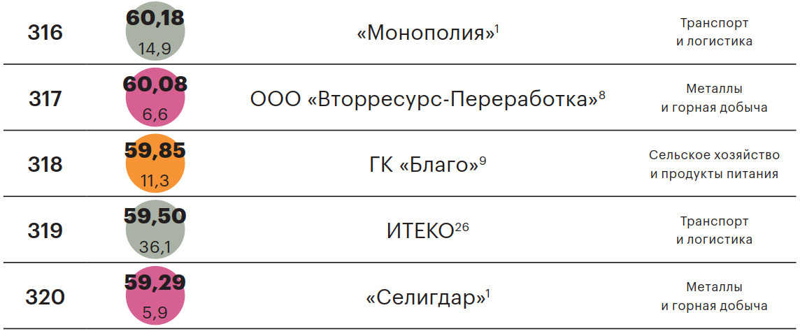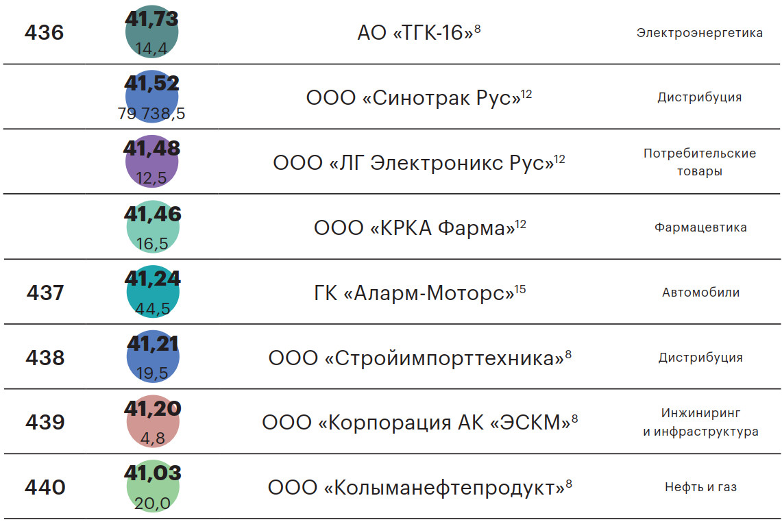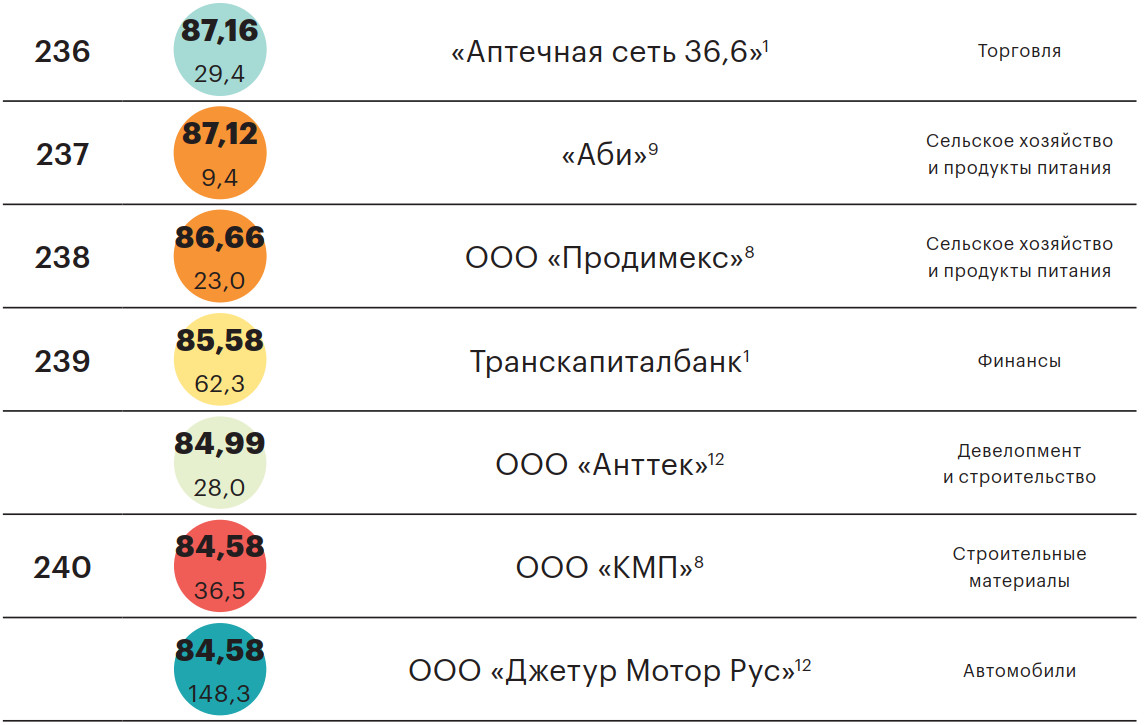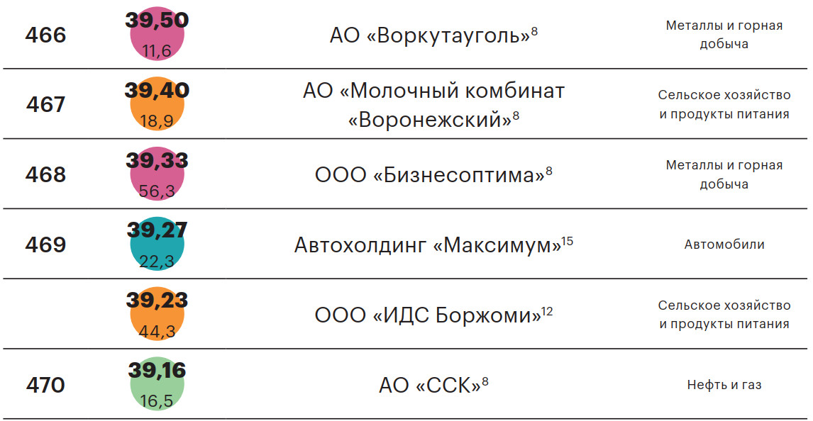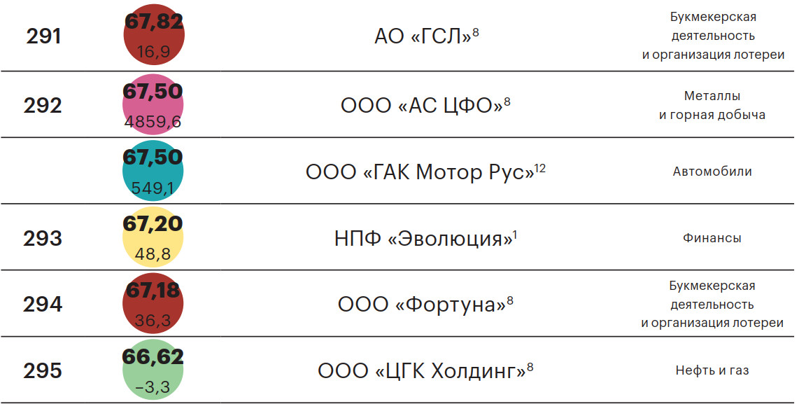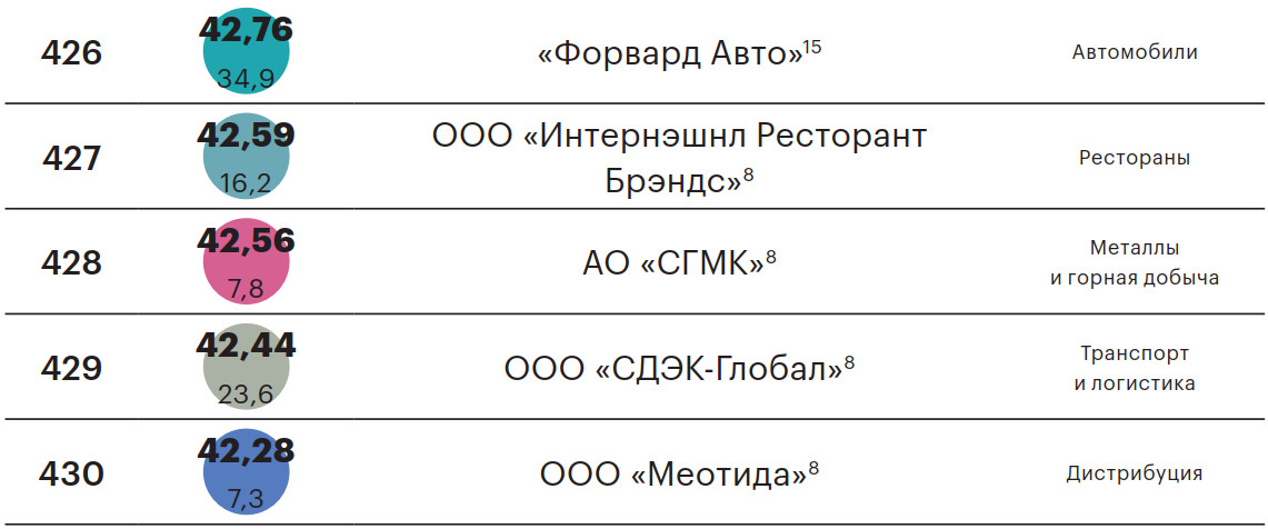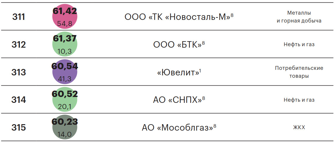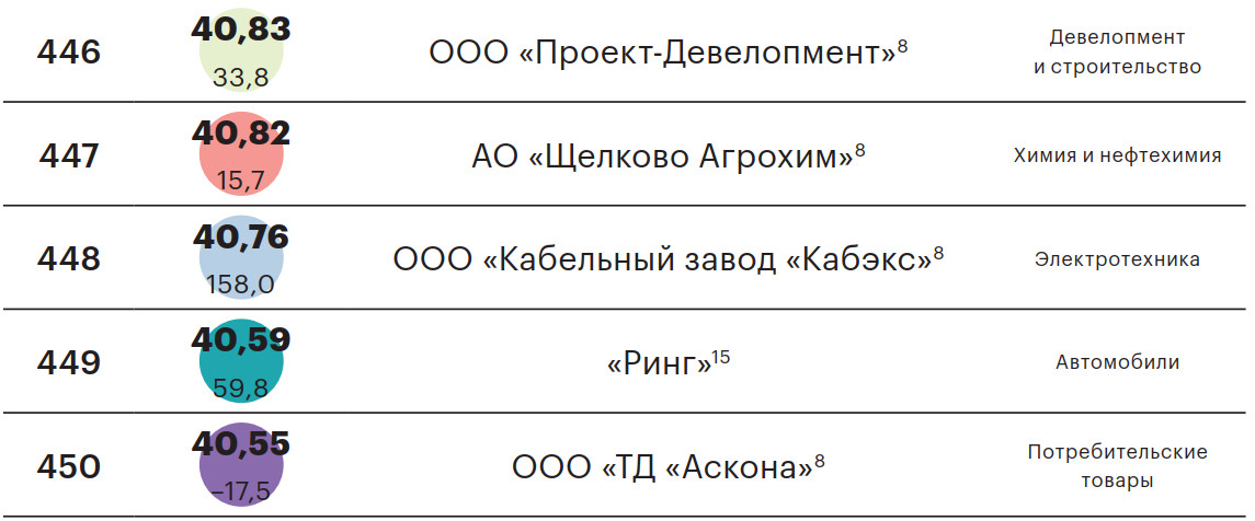 Также в рейтинге без присвоения номера в качестве примера и справочной информации представлены российские многопрофильные холдинги и российские компании с иностранным контролем. Если действующая в России группа компаний с иностранной собственностью публикует или предоставляет РБК консолидированную отчетность по международным стандартам финансовой отчетности (МСФО), то в рейтинге используются показатели такой отчетности. При отсутствии данных консолидированной отчетности, в случае если в России присутствуют несколько компаний, принадлежащих одной иностранной корпорации, в рейтинг включается компания с наибольшей выручкой.