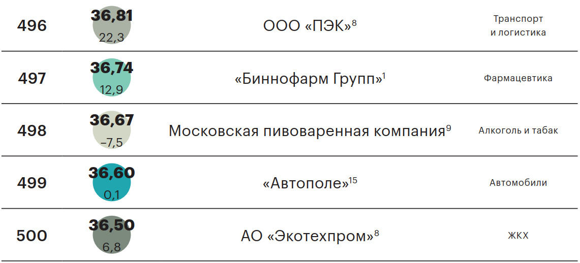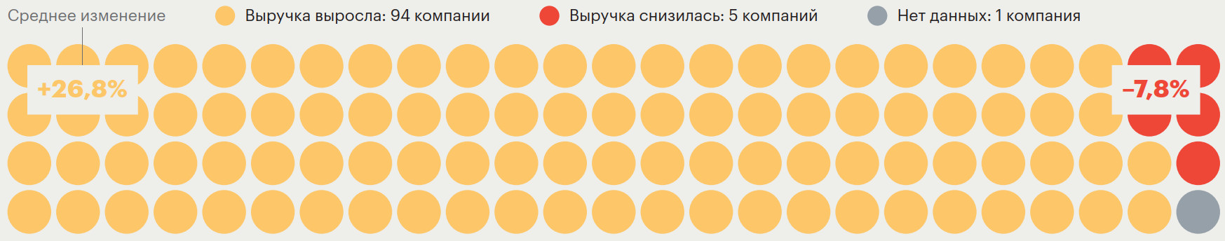 Представление о масштабах упомянутой перевернутой пирамиды дает еще и такое сравнение: более половины совокупной выручки всех участников рейтинга приходится уже на первые 19 компаний из списка РБК 500. При этом подавляющая часть компаний наращивает объем выручки и делает это значительными темпами.