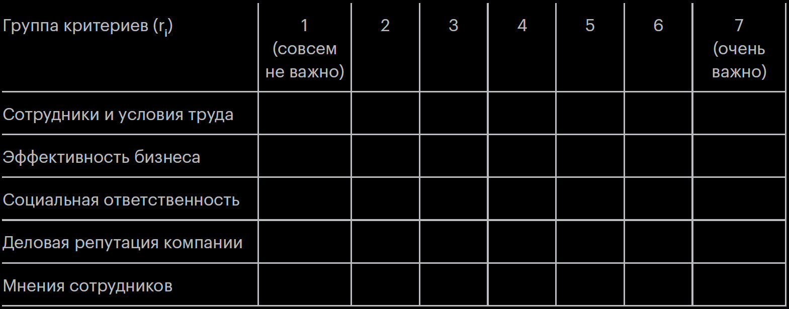 Методика определения весовых коэффициентов для каждой из групп критериев оценки работодателя