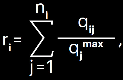 qjmax — максимальная стандартизованная оценка по каждому показателю соответствующей группы критериев среди всех участников рейтинга, подавших анкеты на участие;