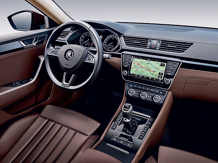 При полном комплекте систем-помощников Škoda держит минимальную дистанцию до впереди идущей машины, сама останавливается и трогается с места, а также работает рулем, ориентируясь по линиям разметки. Топовый Superb может похвастаться отличной динамикой — старт с места до 100 км/ч теперь занимает всего 5,8 с. Двухлитровый двигатель выдает 280 л.с. и работает с шестиступенчатым «роботом» DSG.