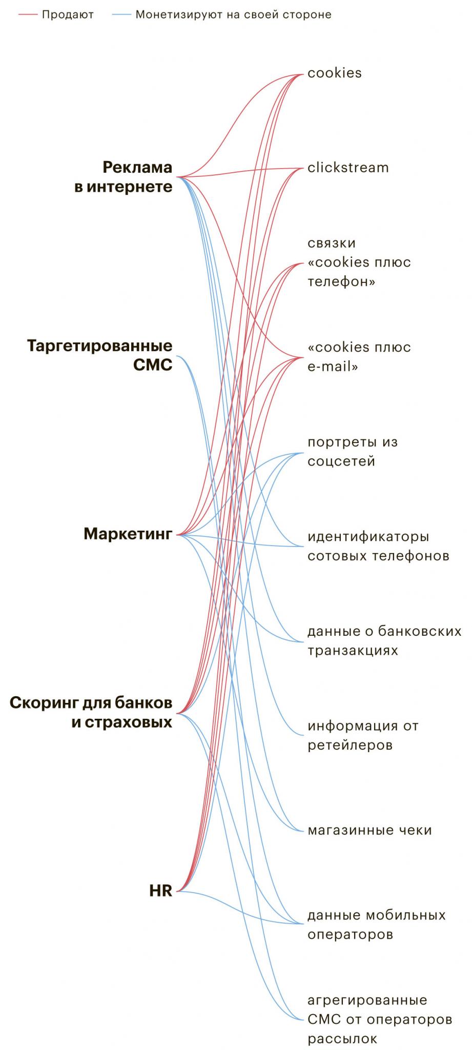«Все почему-то любят говорить о слежке, которую ведут спецслужбы, хотя им, грубо говоря, надо найти сотню террористов среди 7 млрд людей, остальные им неинтересны. Зато они интересны другим организациям, которые хотят на них заработать», — описал принцип этого рынка владелец крупной российской платформы по продаже автоматизированной рекламы.
