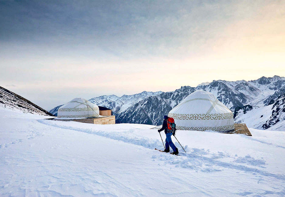 Желающим забраться еще выше подойдут футуристичные домики с панорамными видами на горные пики. Tenir Eco Hotel, расположенный на самой высокой заселенной точке Шымбулака (на высоте 3200 м), — выбор для тех, кто хочет прочувствовать курорт по-настоящему: начать утро с горячих баурсаков (местных пышек) и скрэмбла, выпить флэт-уайт на овсяном молоке и сразу после завтрака отправиться вниз по склону на лыжах.