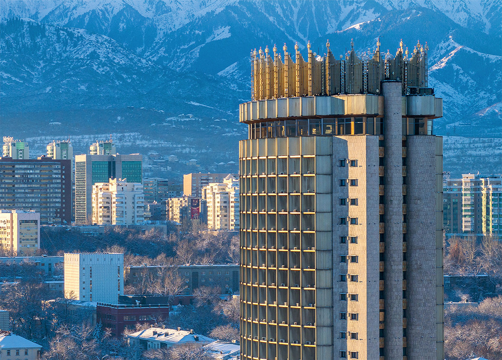 Для тех, кто предпочитает жить в центре, исследовать архитектуру и чувствовать энергию города, хорошим вариантом станет гостиница «Казахстан». Это одно из самых высоких зданий Алма-Аты и живой символ страны, построенный еще в 1970-х. Снаружи — сохраненная эстетика позднего модернизма, внутри — современные комфортные номера. На 26-м этаже есть отличное место для дижестива — коктейльное пространство BarFly с открытой террасой.