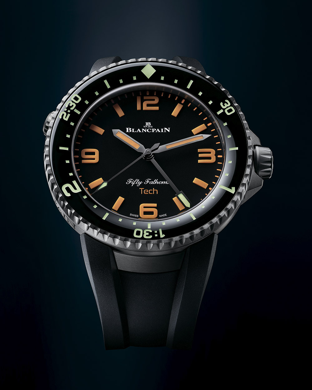 В 2023 году юбиляров предостаточно — от Casio G-Shock (празднует 40 лет) до Rolex Daytona (60 лет). Но, пожалуй, наиболее характерная дата — 70-летие первых современных дайверских часов Blancpain Fifty Fathoms. Вопреки общему заблуждению именно модель «Пятьдесят саженей» от Blancpain определила облик правильного дайвера, а уж дальше остальные марки подхватили заданный Жан-Жаком Фихтером стандарт, поэтому ещё один юбиляр, Rolex Submariner, отмечает в этом году 70-летие «первых дайверских часов с водозащитой 100 метров», так как заявленная глубина погружения Fifty Fathoms была 91 м (те самые 50 морских саженей). Новая модель разработана общими усилиями президента Blancpain Марка А. Хайека (как опытный дайвер он лично тестировал прототипы) и биолога и подводного фотографа Лорана Баллеста. Суть Fifty Fathoms Tech Gombessa в том, что классическая часовая разметка однонаправленного безеля заменена трёхчасовой. Да, перед нами первые в истории механические часы с подобной функцией, для замера предназначена отдельная стрелка. Технология запатентована. Чёрный циферблат поглощает почти 97% света, чтобы удобнее считывать показания, 47-мм корпус сделан из титана класса 23, водозащита 300 метров. $28 000