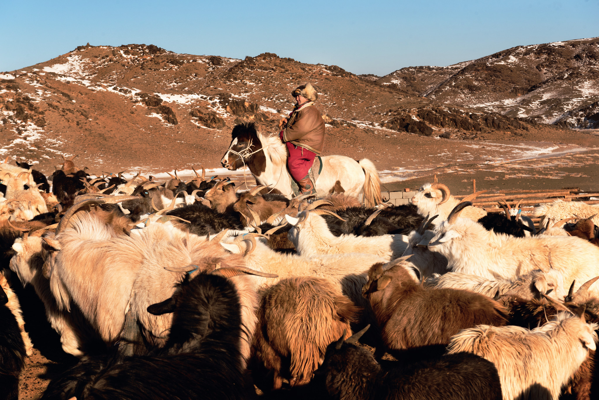 Начнём со спроса: по данным Bain & Co., на долю кашемира приходится 7% в $71-миллиардной международной индустрии люкса, и это скорее сулит проблемы, чем радужные перспективы, если учесть, что от одной козы на выходе получаются скудные 113 грамм волокна. Хозяйства увеличили стада, чтобы поспеть за спросом: сейчас в степях пасётся около 29 миллионов коз, что почти в 5 раз больше, чем 30 лет назад. Столь значительное поголовье могло бы навредить даже пышным лугам, но на монгольской земле и без того хватает трудностей. 90% её территории образуют засушливые районы, подверженные опустыниванию. Страна оказалась в очаге глобального потепления: с 1940 года средняя температура поднялась здесь на 4°C, в то время как повышение глобальной средней температуры составило примерно 1,5°C. Такое потепление ставит под угрозу всю экосистему, в которой обитают козы, и это ещё одно отягчающее обстоятельство.