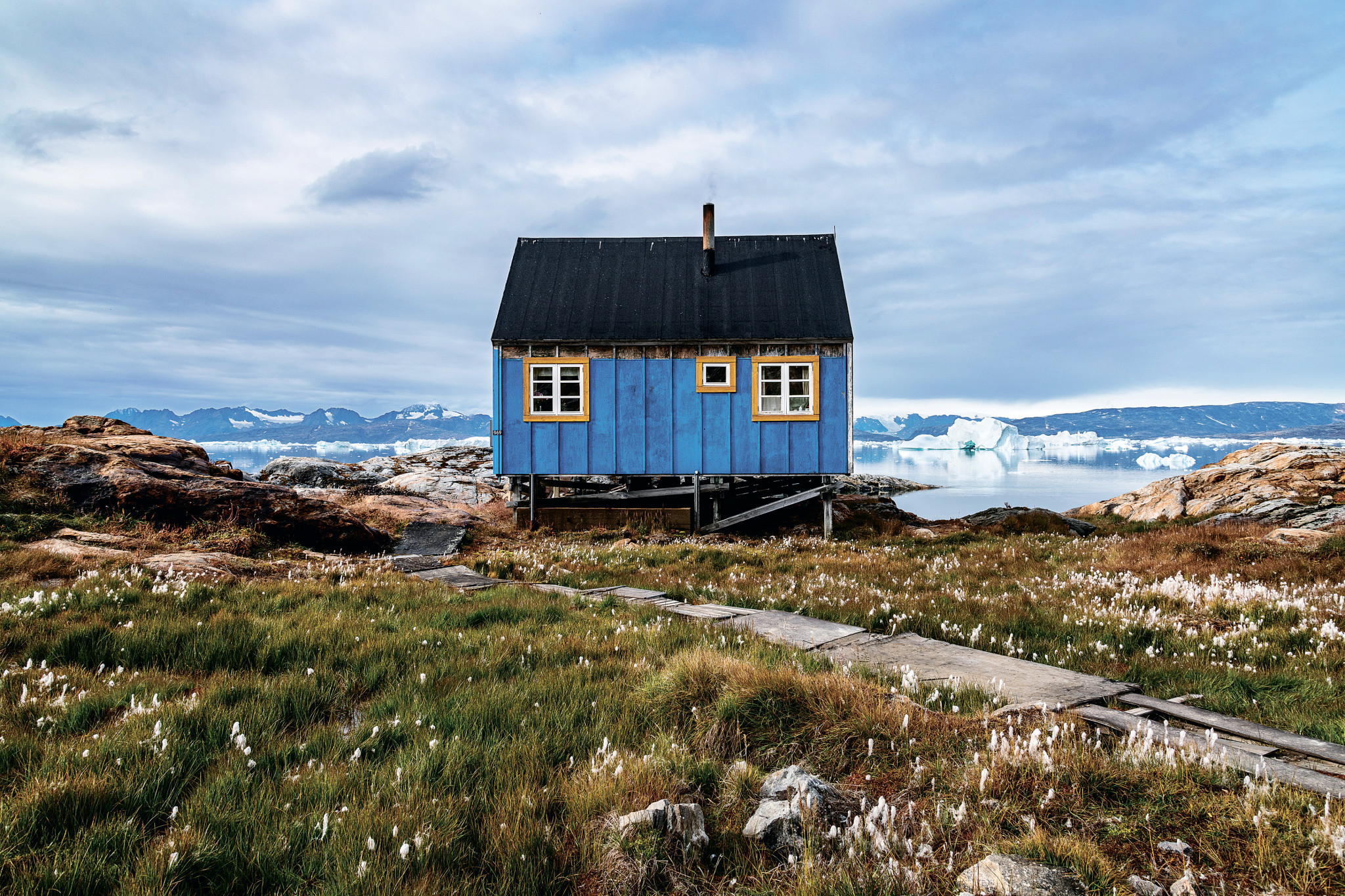 Тающие на солнце глыбы льда, отсутствие хищников, треск откалывающихся айсбергов — любой, кто ищет очевидные следы глобального потепления, сразу обнаружит их в этом пустынном месте на границе ледяного щита Гренландии. Но менее явные признаки изменения климата часто важнее. Несколько недель назад охотники на тюленей были озадачены видом странного существа — одинокой атлантической акулы, которую никогда не видели в этих водах. Каждое лето люди замечают маленькие (и не очень) водопады в местах, которые раньше не оттаивали. С детства живущий здесь охотник и проводник Юлиус Нильсен рассказал, что его друзья и родственники предсказывали погоду, полагаясь на приметы предков-инуитов. Теперь они часто ошибаются. «Всё меняется с пугающей быстротой», — говорит он.