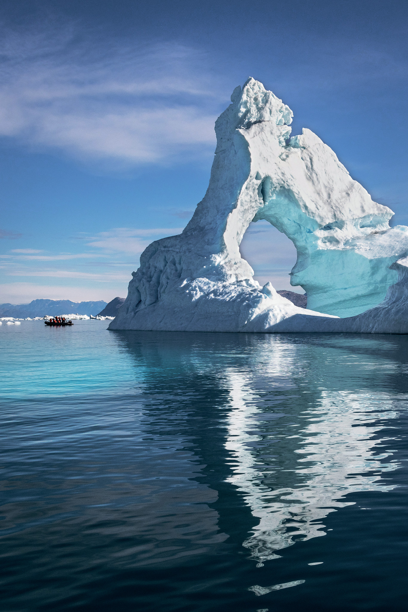 Поначалу я даже не заметил две винтовки, спрятанные среди трекинговых палок и прочего снаряжения в носовой части лодки. Зачем огнестрельное оружие на восточном побережье Гренландии в усеянном айсбергами фьорде Сермилик? Наша группа в неоново-оранжевых костюмах дрейфует мимо безжизненных ледников, многие из которых даже названия не имеют. Лодка причаливает к широкому песчаному пляжу. Утром прилив выбросил сюда сине-белые глыбы льда, но уже после полудня их унесёт обратно в море. Наши два гида вынимают винтовки из чехлов и тихонько сходят с лодки. Оказывается, ружья предназначены для защиты от белых медведей. Мы ждём на борту, наблюдая за полётом кайры, пока не слышим по рации: «Всё в порядке». Сойдя на берег, мы таращимся на айсберги и садимся на пикник в этом недолговечном парке ледяных скульптур.
