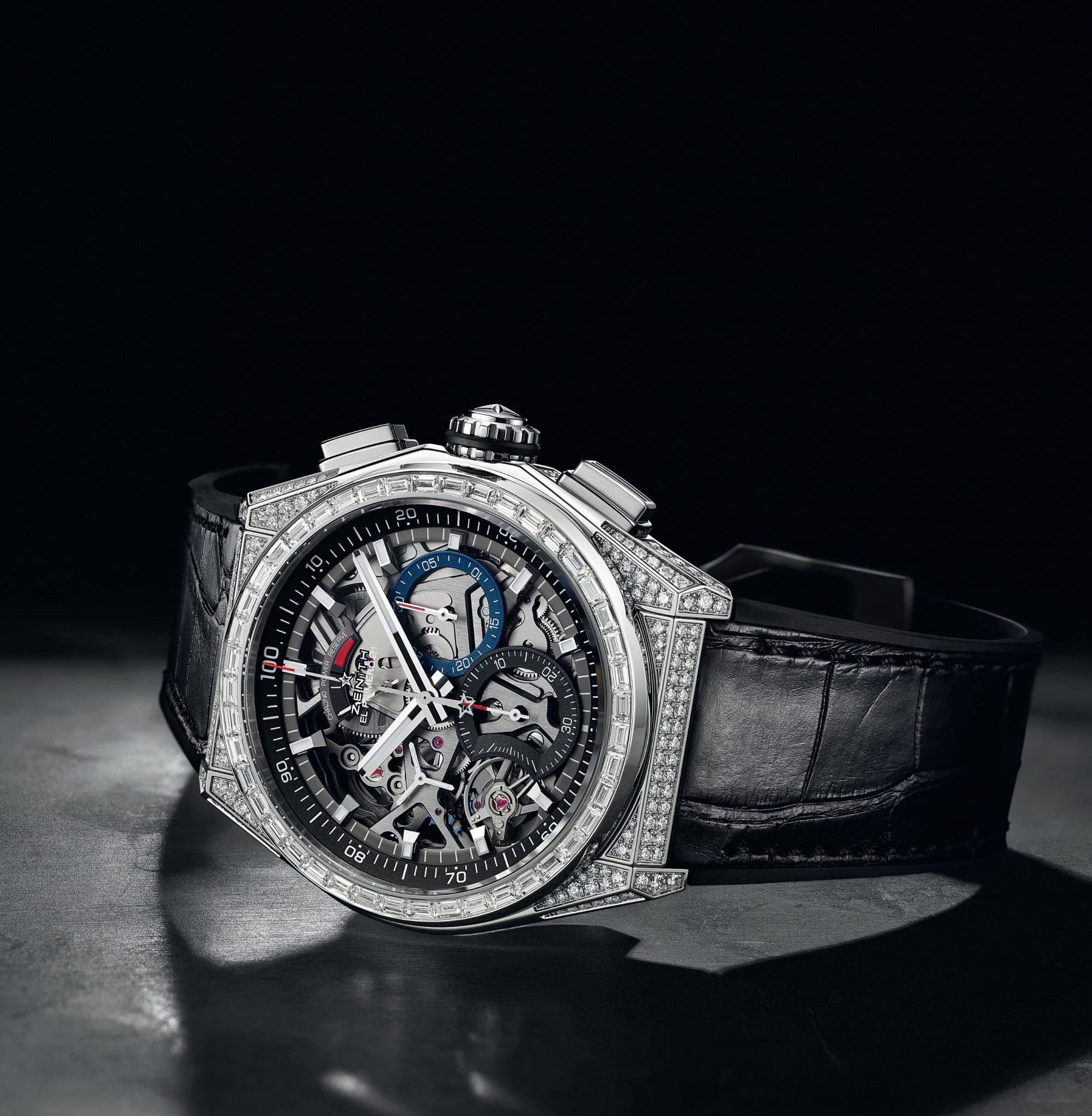 Как приманить прекрасный пол хронографом, способным отмерять сотые доли секунды? Zenith знает как: инкрустировать его корпус 332 багетными и круглыми бриллиантами