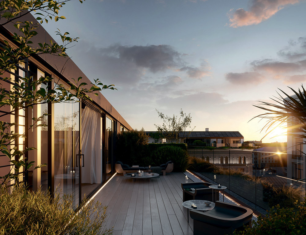 Первый и единственный жилой комплекс в России, созданный в партнёрстве с Giorgio Armani, состоит из 24 эксклюзивных резиденций. Дизайн интерьеров разработан Armani/Casa Interior Design Studio при личном участии Джорджо Армани. Стиль и эстетика итальянского модного Дома воплощены и в общественных пространствах: лобби жилого комплекса и клаб-хаусе для жителей, расположенном в историческом особняке XIX века. Резиденции предлагаются с отделкой из натурального мрамора, ценных пород дерева и других редких материалов. Для стен использованы шёлковые обои, а порталы дровяных каминов облицованы итальянским мрамором Marquina Nero. В каждой квартире предусмотрены отдельный сервисный лифт и вход, предназначенные для перемещения персонала и доставки крупногабаритных предметов.