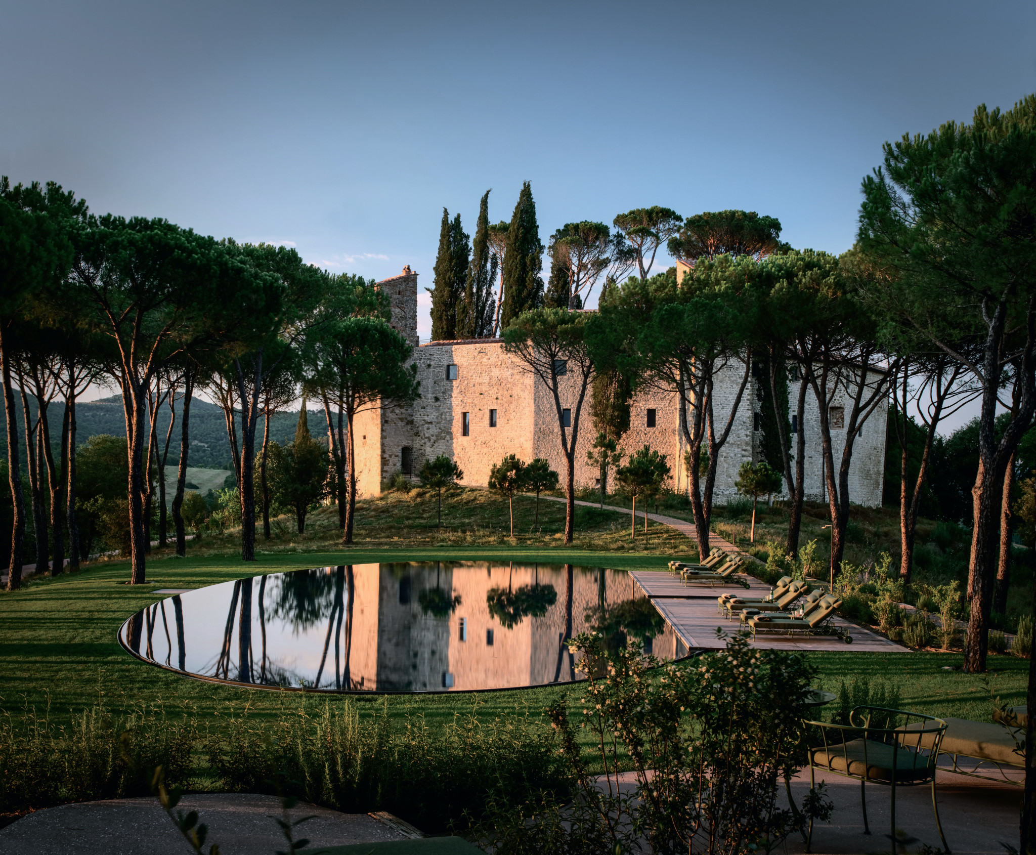 Этой весной семейный проект наконец обрёл финальные очертания — гостей принимают в отеле на 36 номеров и фермерских домах. Здесь несколько ресторанов, один из которых, под названием Il Torrino, расположился в бывшей дозорной башне, и спа, оснащённое по последнему слову красоты. Рекомендуем забронировать суит с камином и тепидарием (парной, устроенной на римский манер). Большая часть мебели произведена Бенедиктом под собственной маркой B.B. for Reschio, компанию ей составляют антиквариат и необычные безделушки, найденные на местных рынках. В поместье приглашают эксперта, который устраивает для гостей трюфельную охоту — пешком или верхом. Фанатам лошадей, будь то новички или опытные всадники, надо заложить несколько дней на тренировки под руководством Антонелло Радикки, который уже более двух десятилетий руководит семейными конюшнями. От $915 за ночь с завтраком