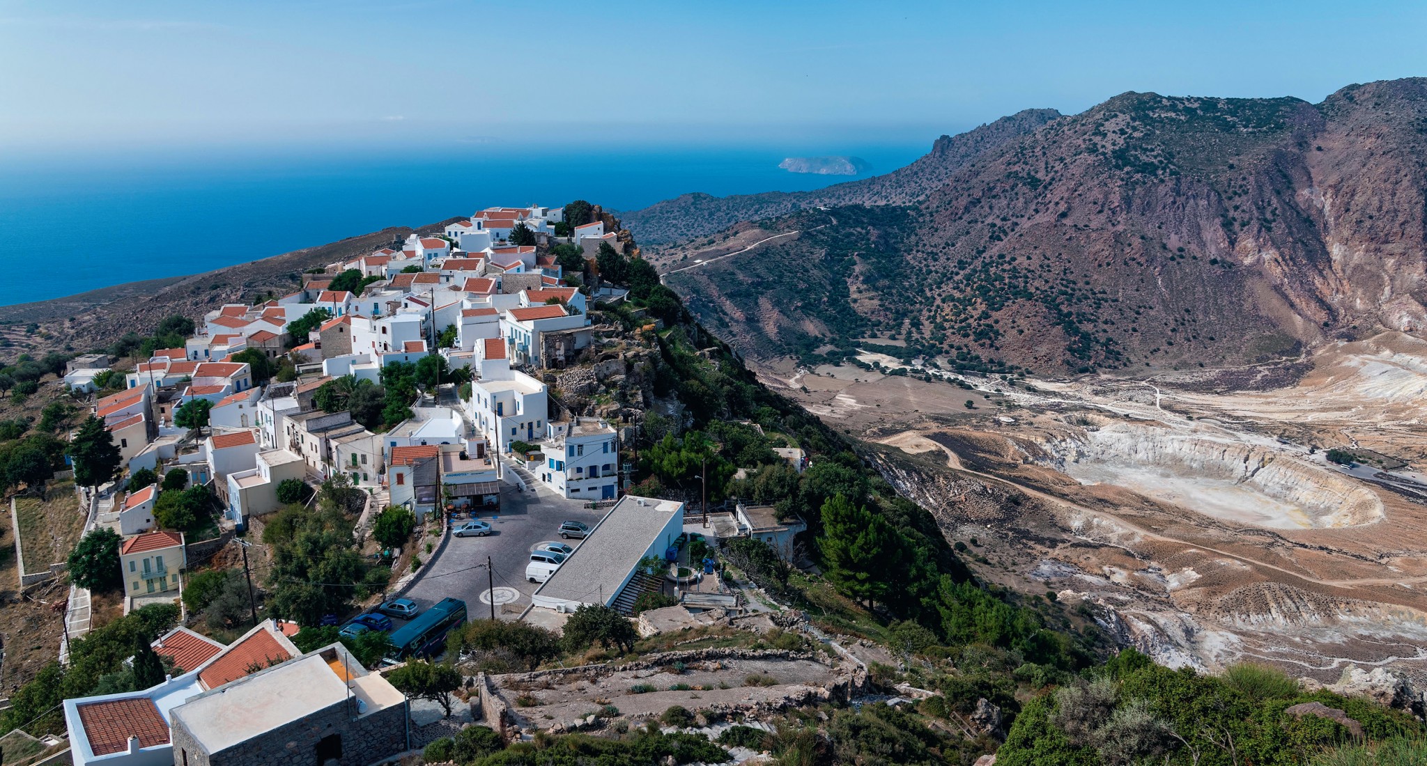 Может, так оно и было. По легенде, остров Нисирос образовался в результате битвы между Посейдоном и бессмертным титаном. Бог морей оторвал здоровенный кусок от соседнего острова и запустил им в голову великана, навечно пригвоздив его ко дну морскому. Новая земля и есть Нисирос, а разгневанные подземные вопли чудовища превратились в вулкан.