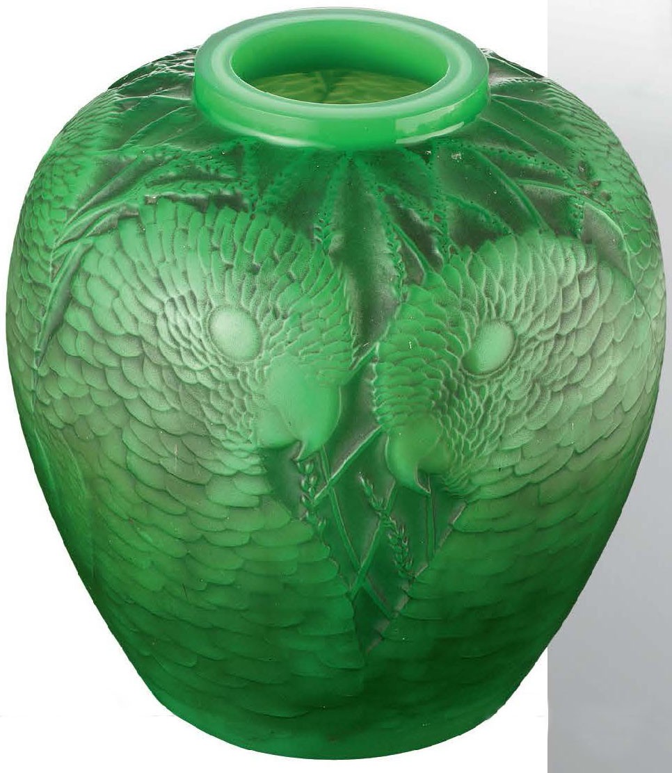 Bonhams в Лондоне выставляет на торги частную коллекцию стекла Рене Лалика, одного из главных реформаторов в области стеклоделия. Среди примечательных моделей — низкая ваза с растительным орнаментом 1920 года (£25–35 тыс.), «Аликанте» с попугаями из многослойного стекла (£20–30 тыс.). Также в каталоге много декоративных фигурок, в том числе знаменитые автомобильные символы — «Дух ветра» и особенно редкий Chrysis (£10–15 и £30–50 тыс.).