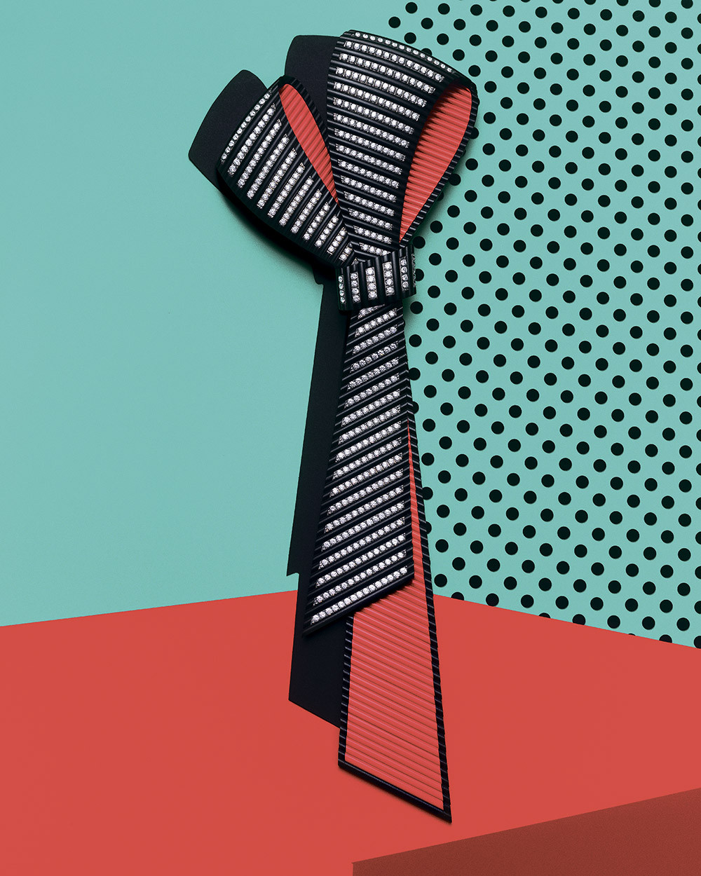 Креативный директор Boucheron Клер Шуан (она занимает этот пост уже 12 лет) снова поразила наше воображение. Каж - дая её коллекция демонстрирует самые смелые художественные замыслы и са - мые трудные технические задачи. А ещё самые необычные для ювелирного дела материалы: Клер уже работала с ракуш - ками и деревом, ротангом и цветочными лепестками. Её последнее сочинение More is More напоминает яркие детские игрушки и рисунки. Акцент более не на цветных камнях, а на оригинальных фор - мах и их воплощении. Кольца This is Not a Ring — причудливый баланс кубов и сфер из титана, муранского стекла, горного хрусталя, лака и бриллиантов на основе из эпоксидной смолы. Драгоцен - ный карман In the Pocket из титановых элементов, закреплённых на эластичной ткани, белого золота и бриллиантов фиксируется на одежде потайным магни - том. Гигантский бант Tie the Knot — на са - мом деле невесомая брошь-трансформер из магния, красного биоацетата и брил - лиантового паве. При этом его фактура напоминает grosgrain, традиционный «рубчик» Boucheron.