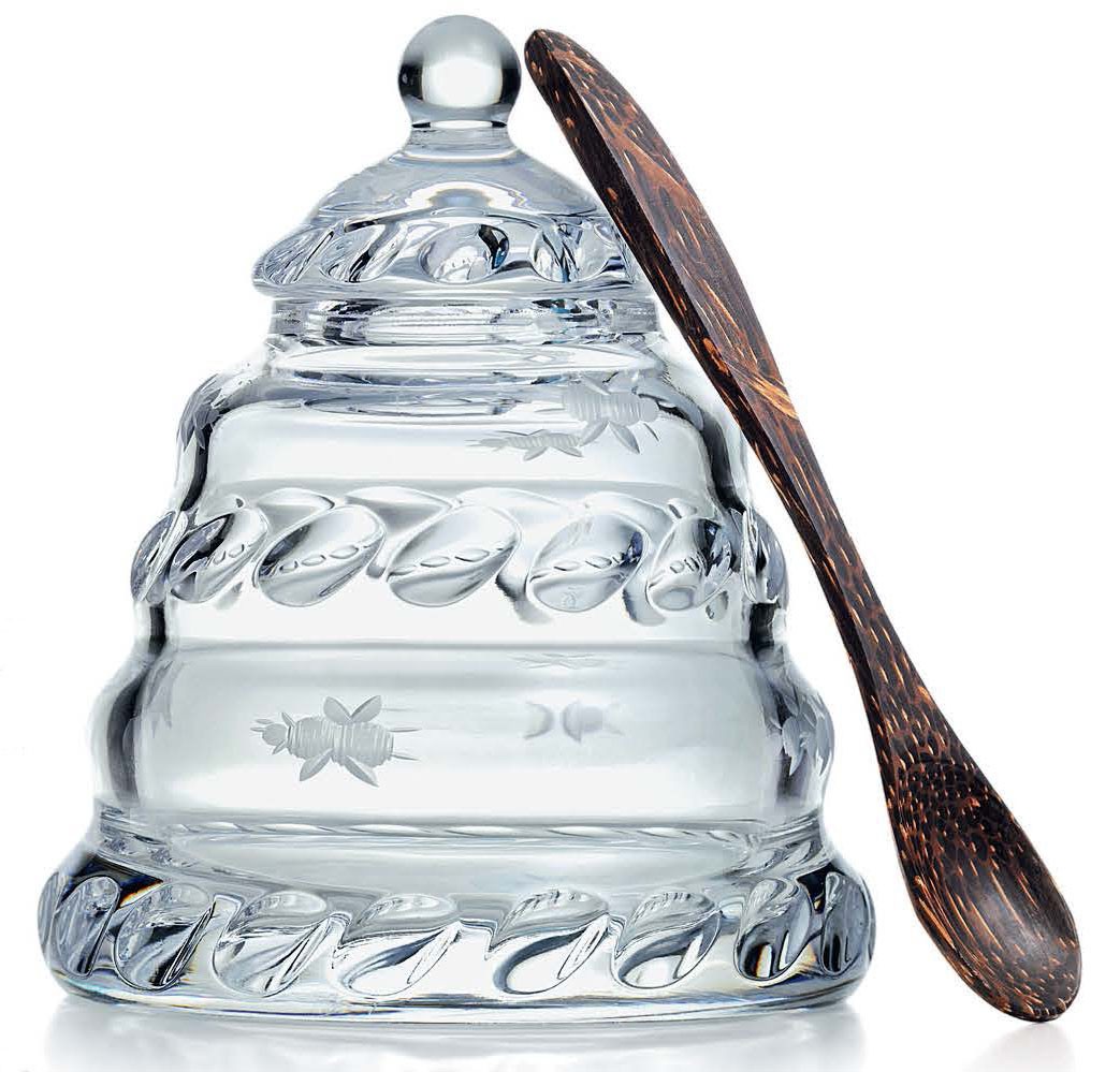 «Вот горшок пустой, он предмет простой, он никуда не денется!» Изящная баночка из хрусталя (£130) ручной работы с гравировкой в виде пчёл от поставщика королевского двора Его Высочества принца Уэльского Чарльза — лучший подарок для сладкоежек.