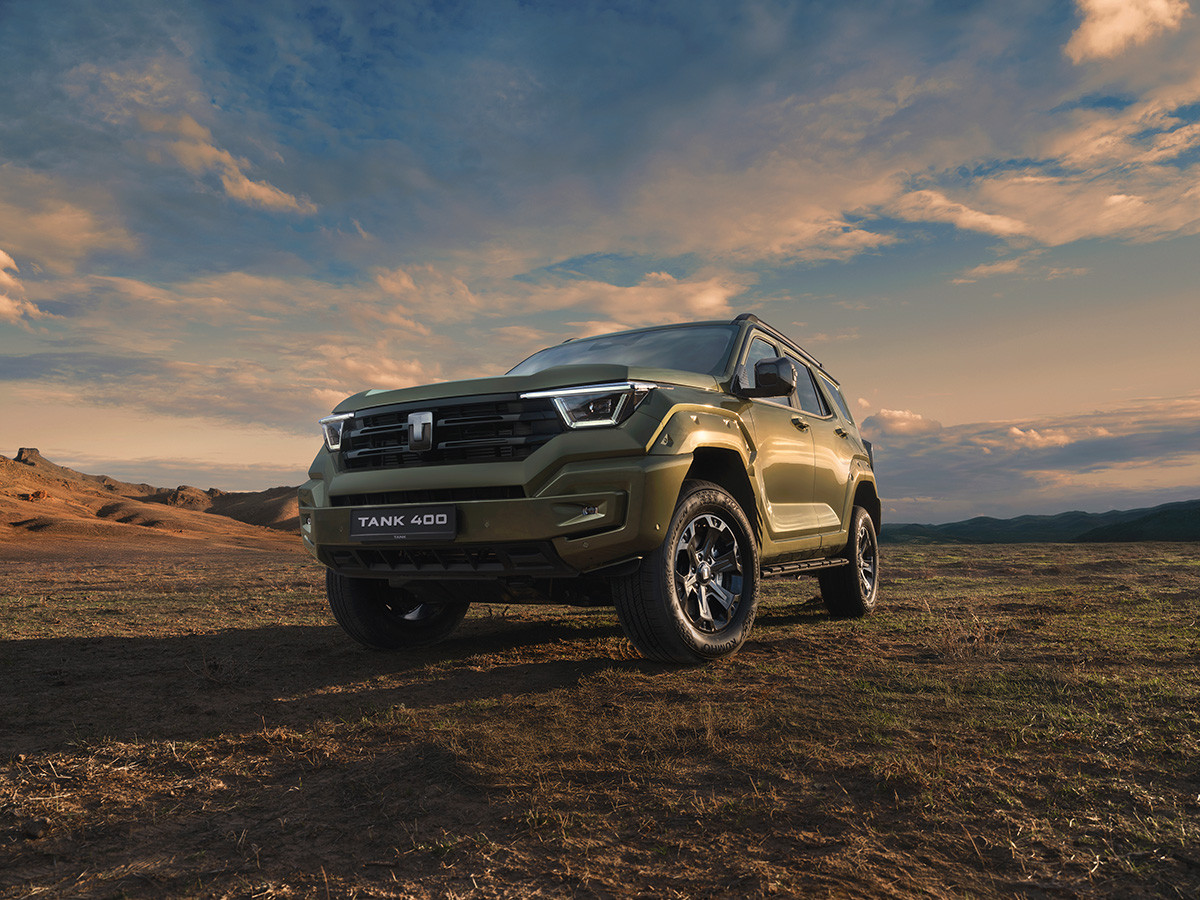 Марка Tank вошла на рынок с уверенностью бульдозера. Или танка. Чёрные Tank 500 с мигалками уже примелькались в столицах, как когда-то «лендкрузеры». А прекрасный в своей избыточности Tank 700 стремится стать альтернативой «геликам», цены на которые пробили стратосферу. Именно на «семисотый» своей брутальной угловатостью похож новый Tank 400 — он не так огромен и дорог, и всё же это крупный и современный внедорожник: на раме, с неразрезным задним мостом, «понижайкой» и классическим автоматом. Новинку уже испытали легендарным ралли-марафоном «Шёлковый путь». Стандартные машины успешно финишировали в «гражданском» зачёте. Но не стоит считать Tank 400 спартанским вездеходом — это комфортный и богато оснащённый автомобиль. В салоне огромный дисплей на 16,2 дюйма, вентиляция сидений, камеры кругового обзора, две беспроводные зарядки… даже не будем пытаться объять всё.