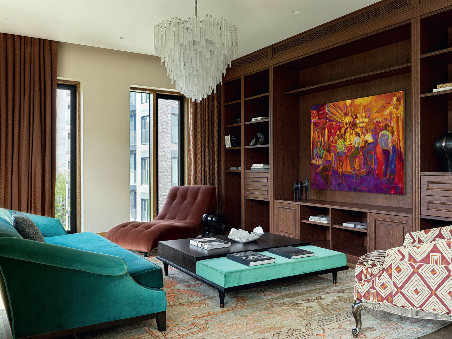 «Мы живем в такое время, когда мир перенасыщен вещами, и мне хочется вкладывать силы во что-то, что наполнено смыслом», — говорит дизайнер Анастасия Марченкова. Недавно завершённый проект в московском ЖК «Вишнёвый сад» прекрасно иллюстрирует этот подход. Так сложилось, что в этом доме дизайнер работал сразу над тремя проектами. «Трое друзей приобрели квартиры практически одновременно. “У нас же не будет похожих квартир?“ — спрашивали меня заказчики. “Но такого в принципе не может быть: вы совершенно разные люди“, — отвечала я им. Так и сложилось — одна квартира выполнена в этническом стиле, с африканскими мотивами, вторая — очень современная, с отсылками к бельгийским интерьерам. Но третий проект стал, пожалуй, самым творческим. Я позволила себе смешать стили — здесь есть и современная классика, и винтажные предметы, и коллекционный дизайн. Я люблю работать с цветом, и, хотя в локальных проектах заказчики часто опасаются его, предпочитая более сдержанные решения, в этом интерьере цвета действительно много: начиная от кухонных фасадов в бирюзовом оттенке до оранжевых, кирпичных, фиолетовых тонов. При этом все оттенки гармонично вписаны в общую концепцию. Так, гостиная и спальня очень разные по динамике, колористической нагрузке. Первая — яркая, активная и динамичная, в ней чувствуется ритм. Спальня, напротив, нежная, мягкая. Каждое пространство диктует энергию, которая должна преобладать в нём. В одном случае это будоражащее, жизнеутверждающее настроение начала дня, которое держит в тонусе, в другом — гармония, расслабление и спокойствие. У нас было пять вариантов планировки, из которых