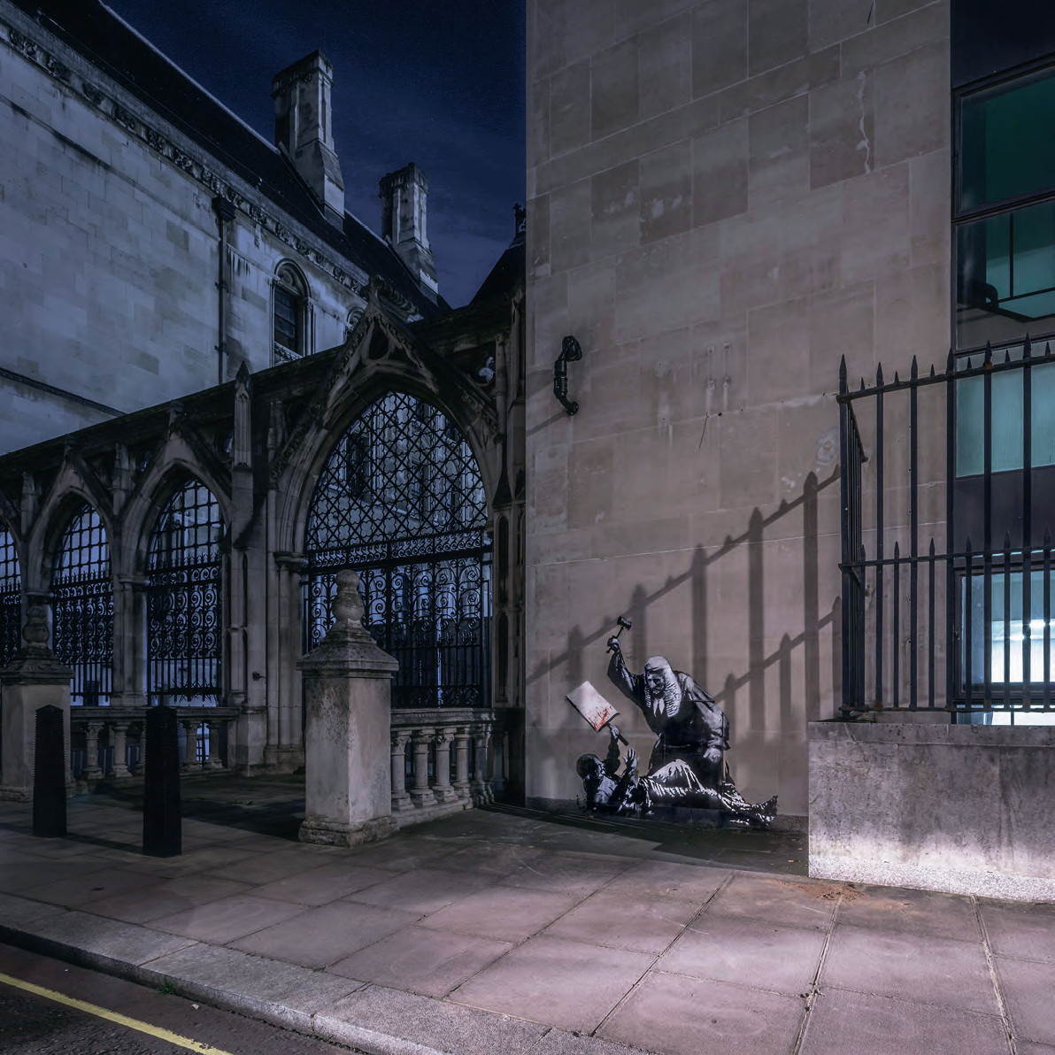 Бэнкси представлять не нужно: британский скандалист, чьи саркастические работы бьют общество не в бровь, а в глаз, известен ещё с 2000-х. Но с тех пор провокативный уличный художник, тщательно скрывающий своё имя и критикующий многие важные аспекты жизни современного социума, сам вошёл в его неофициальный «зал славы». Персональные выставки, Берлинский фестиваль, номинации на премии, рекордные продажи на аукционах — уже казалось, что Бэнкси, став так знаменит, растерял былой задор и смелость. Последние новости о художнике касались исключительно его успеха и признания. Так, уличная инсталляция Бэнкси — полицейская будка, превращённая в аквариум с пираньями, — должна стать центральным экспонатом в новом здании Музея Лондона в Смитфилде. Появившись на улицах Лондона летом 2024 года как часть серии его работ с изображениями животных, будка быстро попала в музейное хранилище. А в Венеции сняли с палаццо Сан-Панталон граффито Бэнкси «Ребёнок-беженец», созданное во время Венецианской биеннале 2019 года. Оно стало неофициальной туристической достопримечательностью, но от воды и соли мурал начал разрушаться, и Министерство культуры Италии решило его отреставрировать. Действительно
