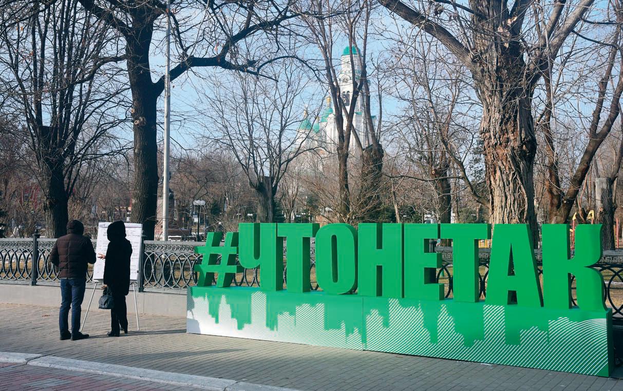 В Нижнем Новгороде прямо перед началом круглого стола, за пятнадцать минут, у установленных на центральной улице города букв народу было немного: волонтеры, которые предлагают людям поучаствовать в опросе и помогают в случае необходимости записать ответ, и пара телевизионщиков с государственных каналов. Это понятно: мороз, холодно н улице. Но верно и то, что и власти, и жители оказывается в некотором недоумении: это формальная причуда московского начальства или все серьезно?