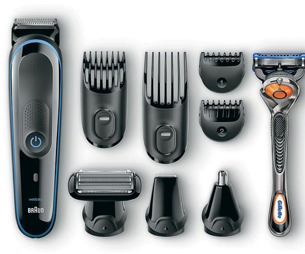 Самый большой по оснащенности набор Braun MGK 3080 выполняет сразу девять различных задач по уходу за волосами лица и головы. В набор входят универсальный триммер для стайлинга, насадки-гребни для волос разной длины, триммер для носа и ушей, точный триммер, бритвенная насадка для ухода за телом и бритва Gillette Fusion ProGlide.