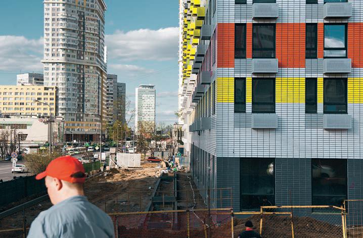 — Город должен развиваться, — говорит Эхин. — Необязательно все причесывать под одну гребенку. Но во всем должна быть гармония. А гармонией управляет только архитектор. Вообще говоря, город — это система 14-го уровня сложности. Чтобы она нормально функционировала, здесь не должно быть никакого любительства С места, где мы стоим, можно наблюдать за тем, как менялся город во времени: пятиэтажки 50-х и 60-х, девятиэтажки 70-х, 14-этажки 80-х, круглая башня из 90-х. Вдалеке стоят три обновленные 12-этажки: в них поставили пластиковые окна, сделали новую облицовку — зеленую, голубую, желтоватую. Они успели попасть в программу капитального ремонта, видимо, уже ставшую неактуальной. За стройкой стоит 40-этажная высотка, отливающая зеленым стеклом, которую непременно хотел показать нам Антон Городничев.
