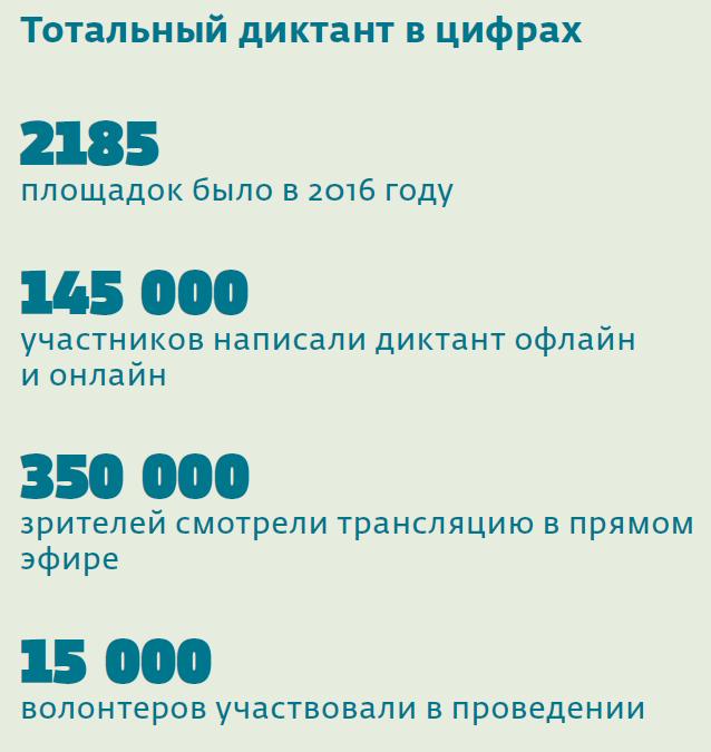 Мне кажется, что в обществе существует потребность к объединению. Ведь общество сейчас сильно поляризовано и буквально по каждому поводу существуют различные мнения. Но тяготение к тому, чтобы ощутить себя единым обществом, все-таки в нас сильно. Вы можете быть противником власти, сторонником власти или относиться к ней нейтрально, но это патриотическая акция, которая в то же время не идеологизирована. Таких только две: «Бессмертный полк» и «Тотальный диктант», и, кстати, обе придуманы в соседних сибирских городах, Томске и Новосибирске — между ними расстояние двести километров. И еще это просто соревнование. В обществе, где расшатываются все нормы, это потребность в какой-то норме. И попытка ей соответствовать.
