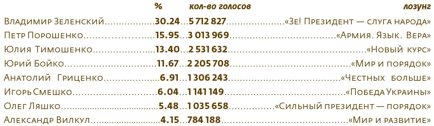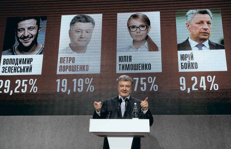 Лозунги Порошенко мобилизовали на войну с москалями до последнего: «Армия. Мова. Вiра», «Геть вiд Москви», «Если не Порошенко, то Путин» — и они могли бы принести победу, если бы главным его оппонентом был пророссийский кандидат с вялыми лозунгами «за мир» (так и случилось: Юрий Бойко занял лишь четвертое место). Однако главным оппонентом оказался Зеленский, который предложил вообще выйти из привычных политических рамок «антироссийский-пророссийский» в неважно какое, но точно другое пространство. Агитаторы Порошенко убеждали: «Голосуй не по приколу», но не смогли объяснить, с какой стати. Так человек в депрессии не понимает, зачем просыпаться, если во сне хотя бы не так уныло.