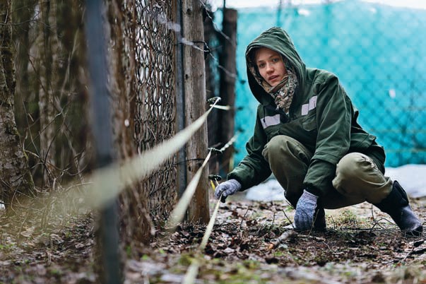 Еще два объекта, наиболее важные в деле питомника, то есть вольеры, из Бубониц не видны. Они в лесу, в полукилометре от хутора, куда не проникают шум и запахи людей. Вольер, который мне показали, размером 1,8 га. Лес внутри дикий, с упавшими толстыми елями, похожий на шишкинскую картину «Утро в сосновом лесу». Территория выходит с одной стороны на болото, с другой — на возвышенность. В центре два сруба: еще одна «берлога» и технический домик. По периметру сетка-«рабица», вчетверо толще и вдвое выше обычной, а вдоль забора протянуты провода устройства «электрический пастух» — для защиты медвежат от незваных гостей из леса.