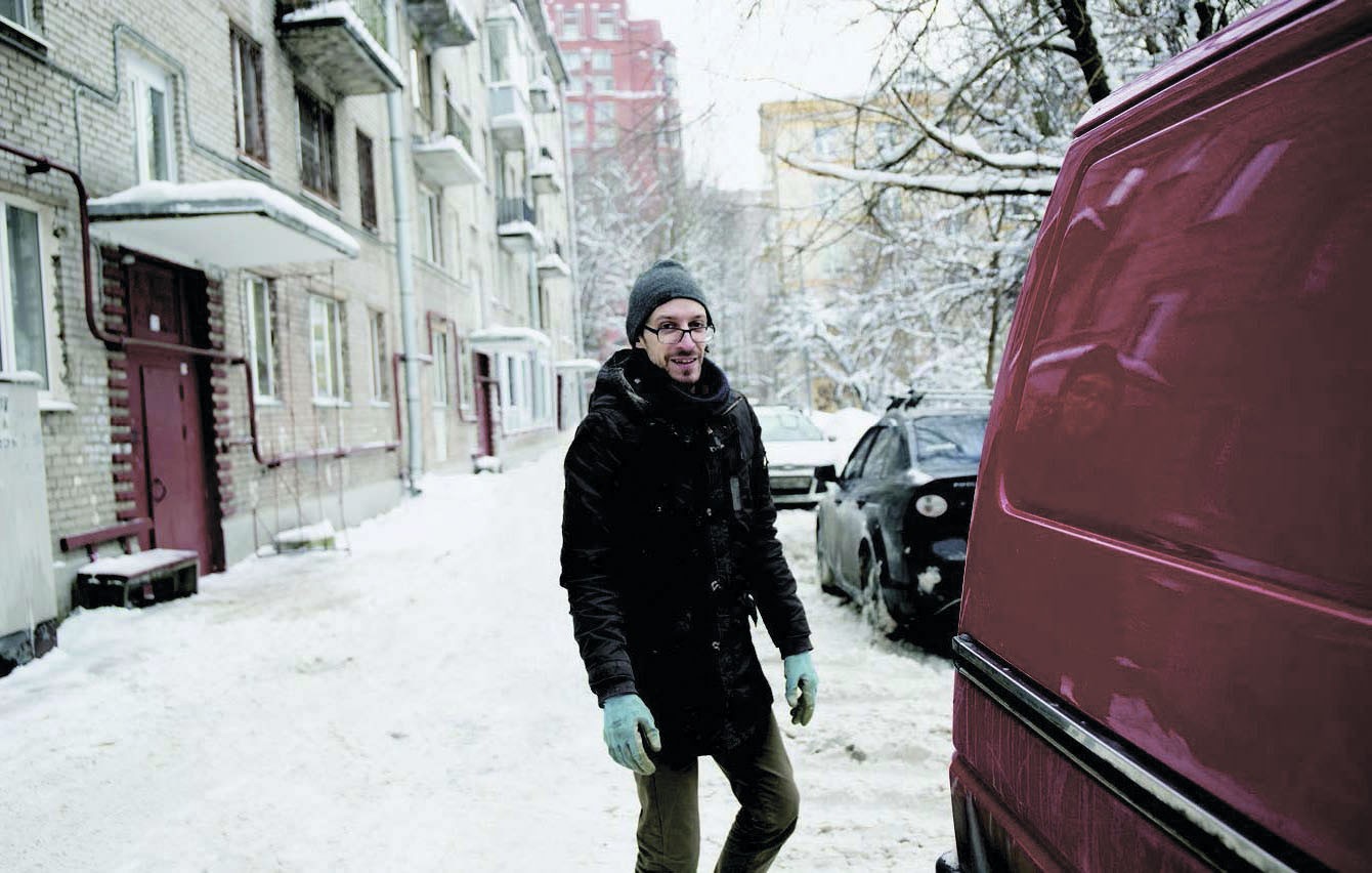Всеволод складывает вторсырье в машину. Еще середина дня, а фургон уже наполовину полон