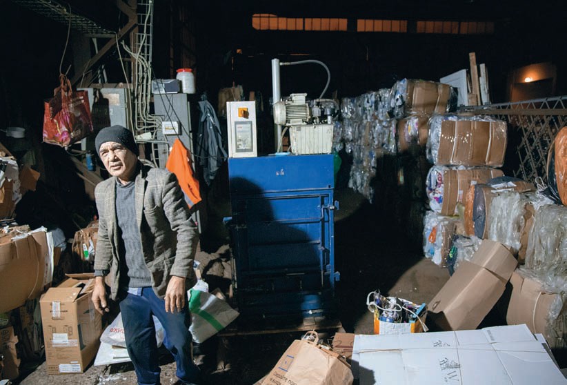 Уже начинает темнеть. Еще несколько плановых заказов, затем несколько внеплановых. После них едем отвозить все собранное за день в «Точку сбора» на Боровую. Добираемся до пункта совсем затемно. Теперь самое сложное — разобраться, где и что рассортировано в едва различимых пакетах. На пункте уже стоит грузовая машина, тент над кузовом разбух от набитого вторсырья. Часть пакетов не влезла — они лежат на крыше. Остальное поедет следующей партией. Начальник пункта Дмитрий Кузнецов продолжает забивать грузовик. Мы с Всеволодом начинаем разгружать свой доверху набитый фургон.