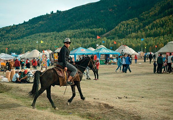 В Кырчыне между тем который день — праздник кочевой культуры. Более восьмисот юрт издалека, на подъезде, кажутся мелкими камнями, щебнем, рассыпанным рукой Манаса — столь объемно это ущелье, громадно, протяженностью в три десятка километров, по старинке кто-то еще продолжает его называть русским именем — Семеновское.
