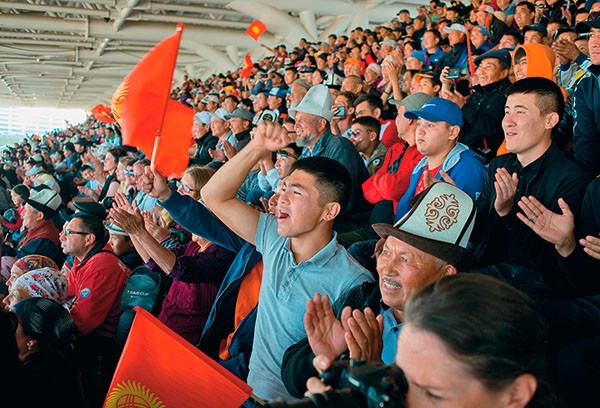 Почти весь ипподром болеет за Россию. Или против казахов — традиционно основных соперников киргизов в этом виде спорта.
