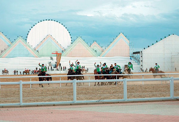 На ипподроме тем временем сражаются команды по кок-бору. Красноярский край против Казахстана.
