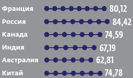 Факторы, влияющие на индекс EPI в России, в сравнении с некоторыми другими странами
