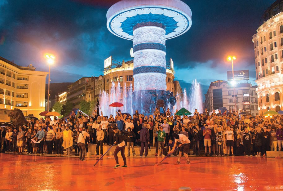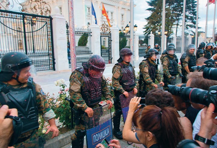 Небольшая Македония с населением менее двух миллионов человек расположена на стратегически важном участке юго-восточной Европы. В последние несколько лет Македония регулярно привлекает к себе внимание международной общественности: с 2015-го по начало 2017-го страну потрясали массовые протесты, названные впоследствии «разноцветной революцией». Протестующие забрасывали госучреждения и многочисленные безвкусные новоделы в Скопье «капитошками» с краской, выражая справедливое недовольство внутренней политикой правящей тогда партии ВМРО-ДПМНЕ во главе с премьер-министром Николой Груевским. Протест носил ярко выраженный «надпартийный» характер, однако фактически ключевой силой была оппозиционная партия СДСМ (Социал-демократический союз Македонии) во главе с Зораном Заевым — главным оппонентом Груевского и его партии, который в результате и стал премьер-министром. Именно Заев предал гласности материалы, подтверждающие массовое прослушивание 20 тысяч граждан (особенно госслужащих) властями — более того, аудиозаписи, которые в народе назвали «бомбами», скомпрометировали самих властных чиновников и подлили масла в огонь протестов.