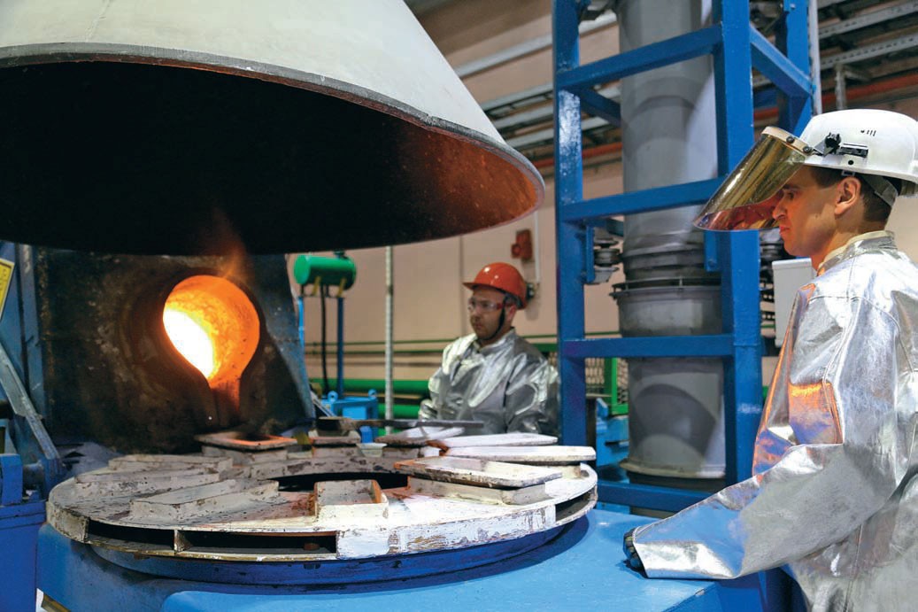 Если металлурга спросить: «В чем сила, брат?», он сразу ответит: «В плавках». Да не в тех, не в семейных трусах, конечно, а в плавках золотосодержащих концентратов! Наплавишь золота — деньги будут, жизнь будет, все будет. На плавильном участке рабочие в очках, касках и серебряных костюмах больше походят на космонавтов, чем на металлургов. Они проделывают неведомые мне манипуляции, и из печи начинает литься раскаленный докрасна металл. Я завороженно наблюдаю, как он заполняет форму: одну, другую, а ребята и глазом не ведут — делают свою работу и делают.